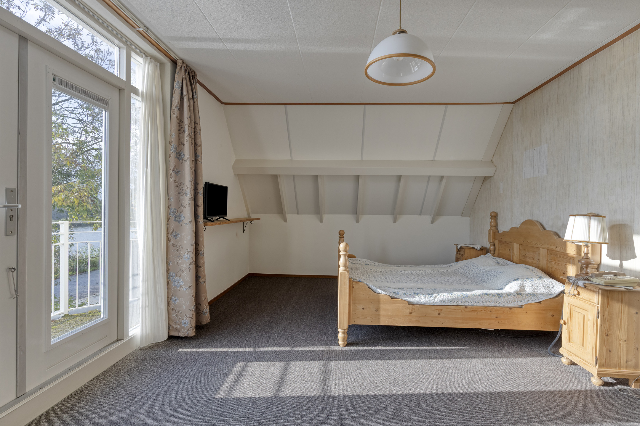 Slaapkamer 1, gelegen aan de voorzijde, met vaste kasten en toegang tot het balkon met prachtig uitzicht over de Rotte.