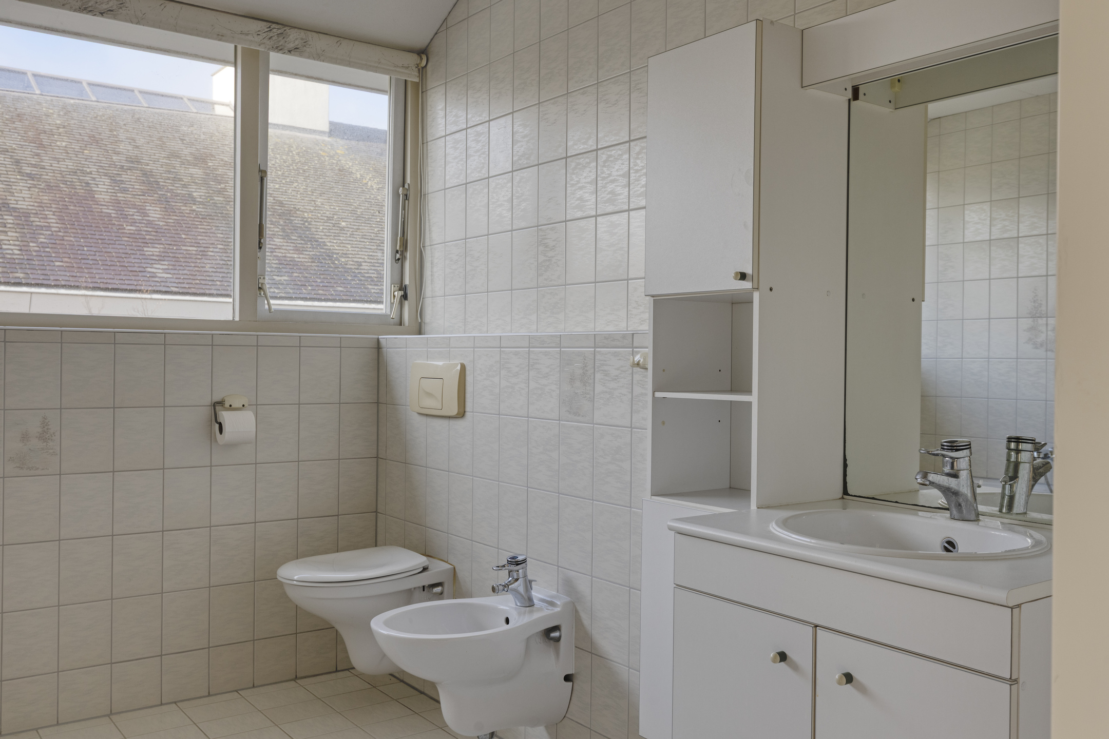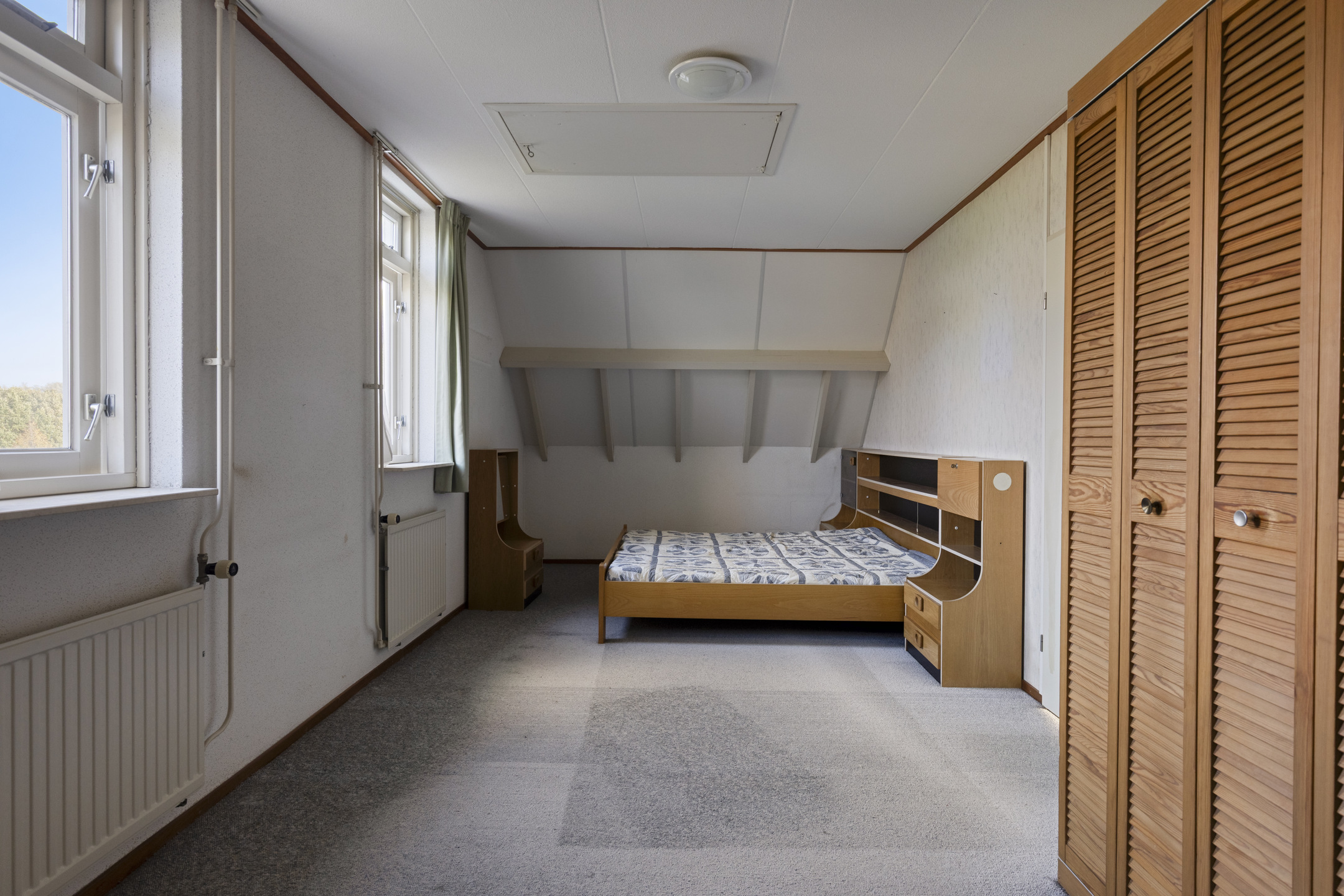 Slaapkamer 2, ruime kamer aan de achterzijde, waar eenvoudig twee volwaardige slaapkamers van te maken zijn. Vanuit deze kamer is de vliering bereikbaar, waar zich de opstelplaats van de cv-ketel bevindt.