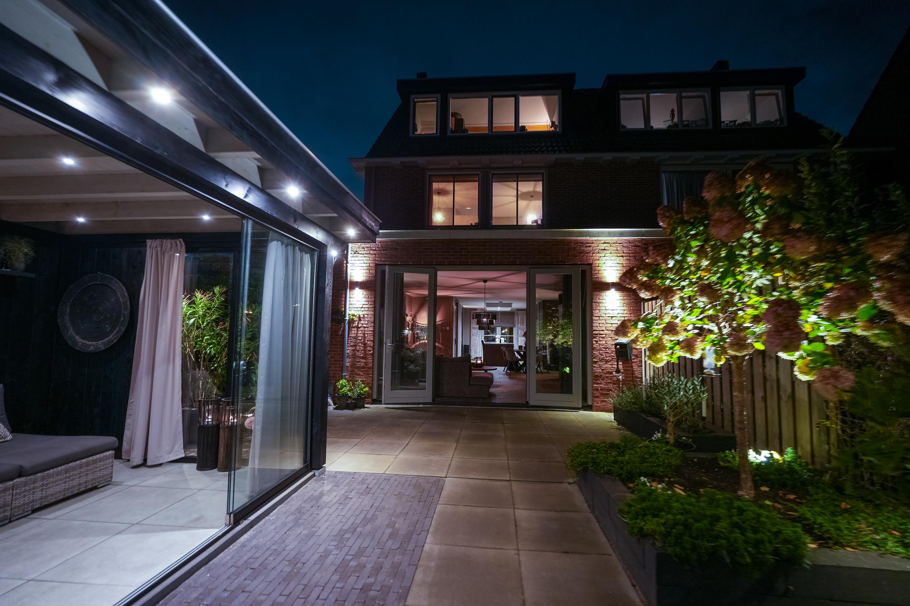 De tuingerichte woonkamer heeft een prettige indeling en sluit mooi aan op de moderne open keuken met een groot kook- en spoeleiland. Hier is alle ruimte om samen te koken, te eten en te genieten. Op de verdiepingen bevinden zich vier goed ingedeelde slaapkamers, een luxe badkamer en twee aparte toiletruimten.