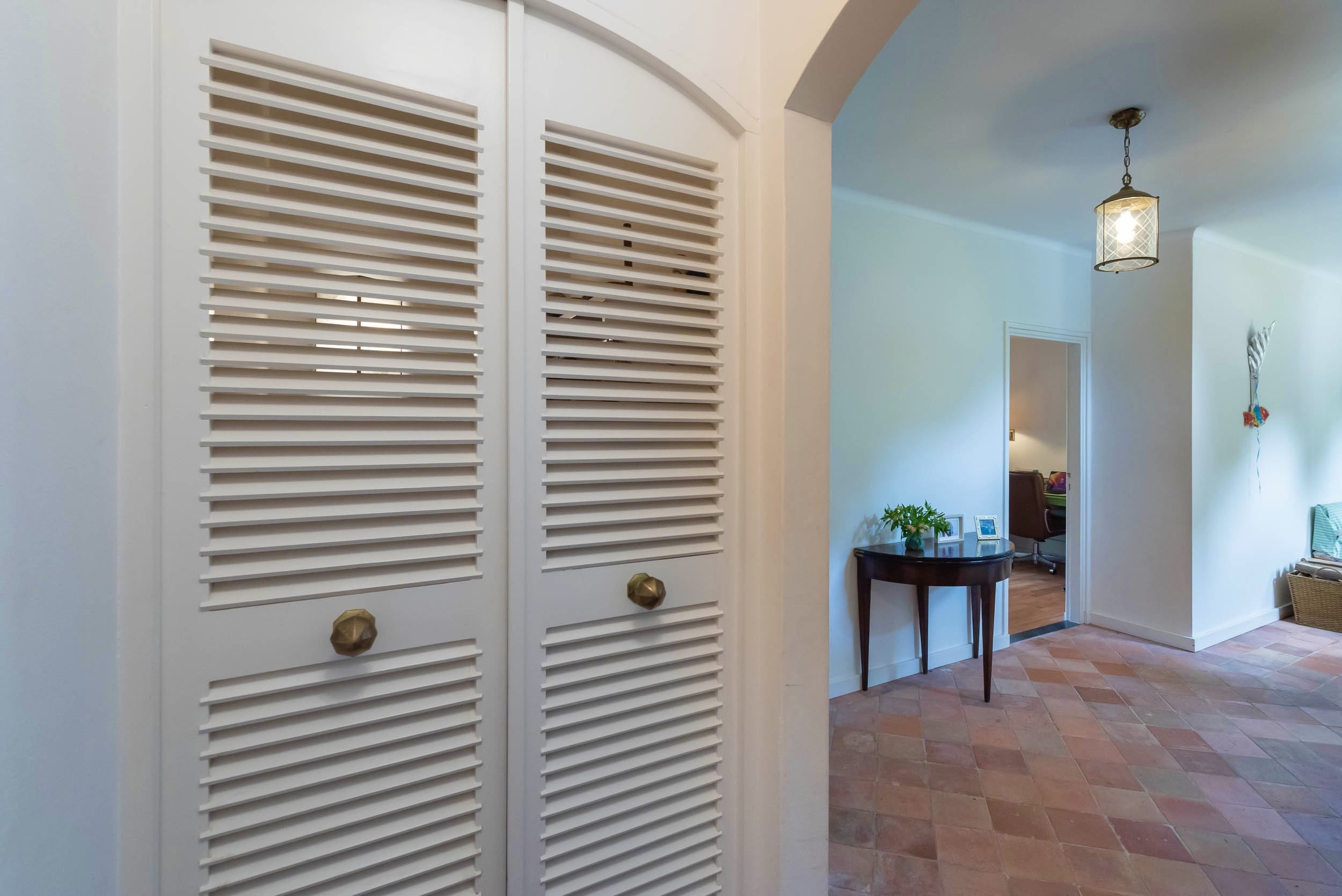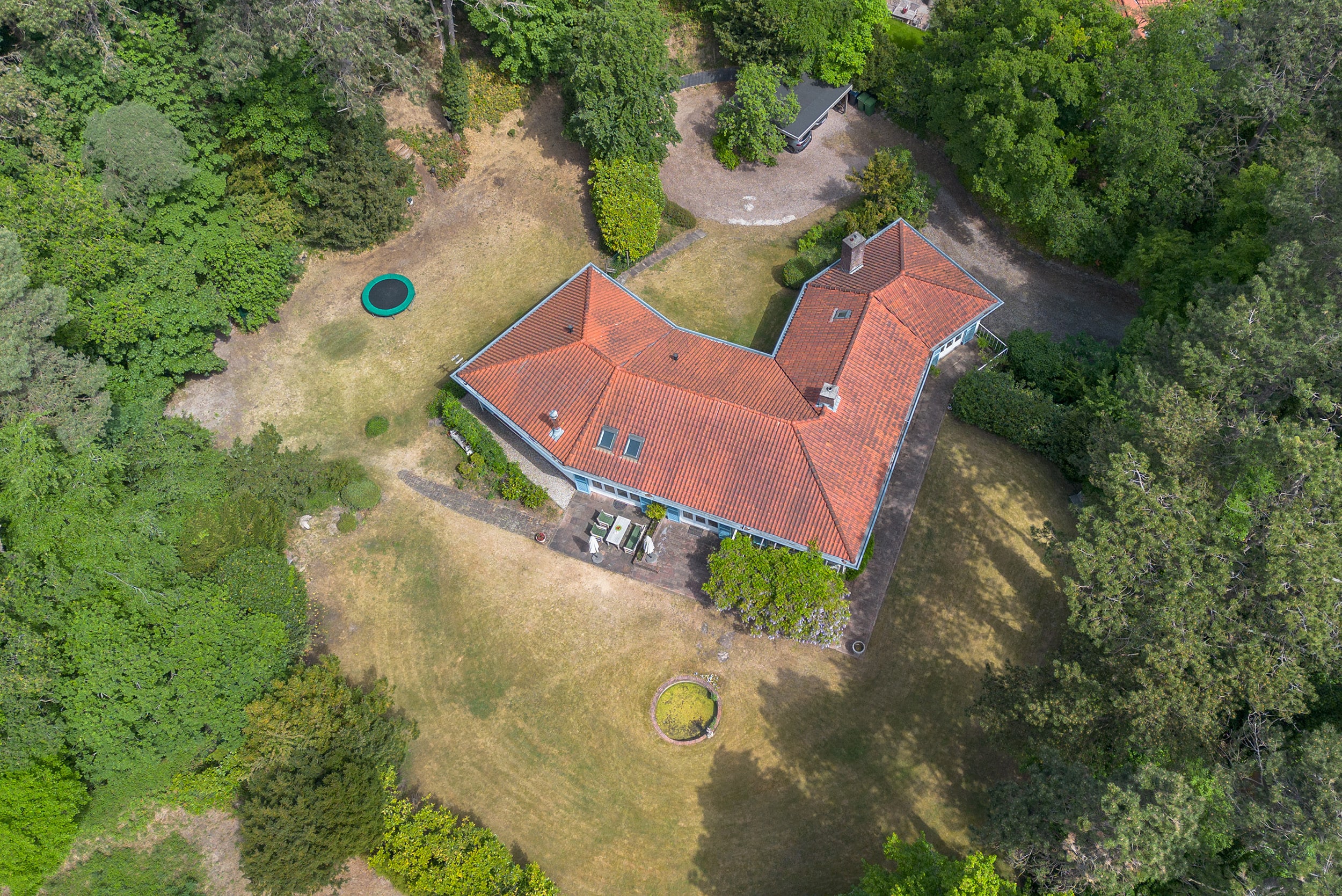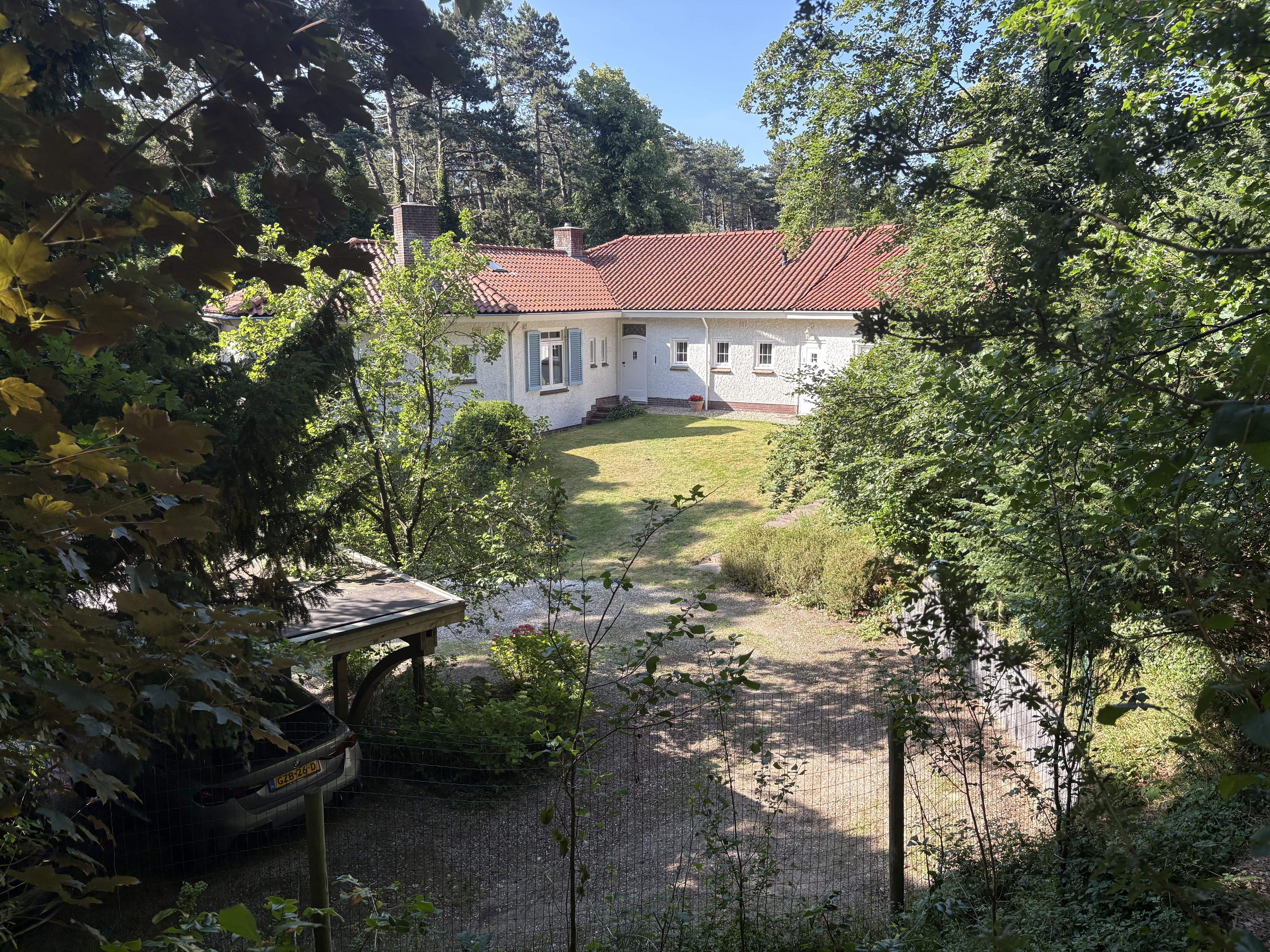 De villa heeft een mediterrane uitstraling met haar lichtblauwe Louvre luiken, schilddak en Franse tegels in de hal en is gelegen op een zonnig perceel van maar liefst 4420m2, omzoomd door prachtige bomen. Via de royale oprit komt u aan bij de dubbele carport met rond point. Daarnaast is er nog voldoende parkeerruimte voor meerdere auto’s en een inpandige garage. Het huis heeft een zeer comfortabele en gezellige indeling, de kamers hebben een mooie maatvoering. De meeste vetrekken geven via openslaande deuren toegang tot de tuin, die verrassend is vanwege de variaties in het perceel. In 2001 heeft een aanbouw plaatsgevonden volgens de oorspronkelijke architectuur.