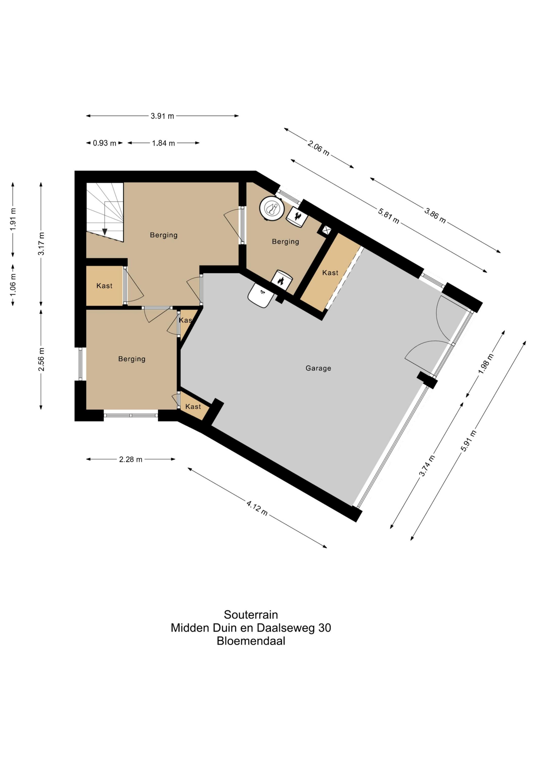 Kelder: cv-ruimte, wijnkelder met voorraadkast, garage met uitstortgootsteen.