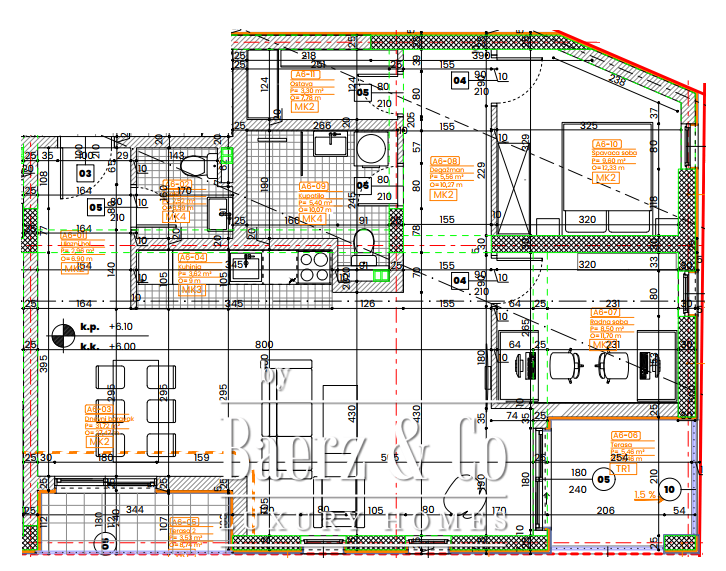 Appartement Budva Center plaatst u in het hart van de Montenegrijnse Adriatische kust, op slechts 150 meter van zee en strand. Deze residentie is gelegen in een eigentijds gebouw met zes verdiepingen, waarvan de oplevering eind 2026 wordt verwacht, en combineert stijl en locatie die geliefd zijn bij internationale kopers. De doordachte indeling van 87 m² omvat een hal, een open woonkamer met keuken en eetgedeelte, twee slaapkamers, een berging, een badkamer, een apart toilet en twee terrassen. Bij oplevering zijn de vloeren afgewerkt, voorzien van elegante tegels, een uitgeruste badkamer en airconditioning—voor direct wooncomfort.