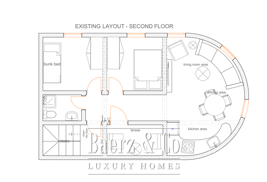 Deze woning is verdeeld over drie woonlagen, elk met een zelfstandig appartement van 50 vierkante meter. De stenen gevel weerspiegelt het lokale architecturale erfgoed en past harmonieus in de omgeving. Er is privéparkeergelegenheid voor twee auto's en een directe asfaltweg garandeert een soepele aankomst, terwijl de entree op de eerste verdieping extra beschutting biedt.