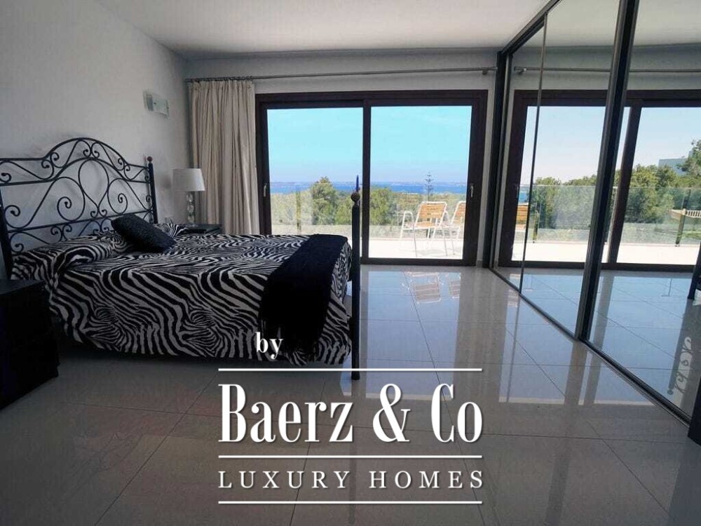 De omgeving Deze fantastische residentie met zeezicht en tropische tuin bevindt zich op loopafstand van Cala Salada. Dit wordt ook wel de sunset coast genoemd, waar zomers de zon middenin de zee ondergaat. Andere bekende stranden zoals Cala Gració en Caló des Moro bevinden zich in de buurt. De stad San Antonio met allerlei voorzieningen, horeca en beach clubs ligt op tien minuten rijden. De faciliteiten De royale residentie is verspreid over een villa van 318 m2 en een appartement dat zich perfect leent als gastenverblijf. De fenomenale residentie is van alle gemakken voorzien, waardoor je deze plek eigenlijk niet meer hoeft te verlaten. De villa beschikt over een eigen tennisbaan, basketbalveld en een volledig uitgeruste fitnessruimte. Daarbij zijn er verschillende zones om te genieten van het buitenleven met een infinity pool, een kinderbad en een jacuzzi. Het exterieur beschikt tevens over een visvijver, een overdekte buitenwoonkamer en een bar met barbecue. De begane grond De villa van twee verdiepingen biedt een perfecte mix van natuurlijke elementen en modern maatwerk. Op de begane grond bevindt zich de ruime woonkamer met openhaard, eetkamer en een U-vormige keuken in hoogglanswit. Deze is uitgerust met hoogwaardige inbouwapparatuur en veel opbergruimte. Tevens faciliteert deze verdieping twee slaapkamers met aangrenzende badkamers. Beide beschikken over grote raampartijen en rustgevend zeezicht. Op deze verdieping bevindt zich tevens het gastentoilet. Het huis is hoogwaardig afgewerkt met de beste materialen, heeft dubbele beglazing en marmeren vloeren voor enerzijds een koelend effect. Daarbij is de gehele residentie voorzien van vloerverwarming en airconditioning die zowel kan koelen als verwarmen. De eerste etage en het appartement Deze verdieping faciliteert drie slaapkamers, waarvan twee met ensuite badkamer. Hier is het uitzicht op zee wellicht nog spectaculairder te noemen. Het imposante landgoed beschikt daarbij over een appartement met een slaapkamer, badkamer en volledig ingerichte keuken. Perfect als gastenverblijf of huisvesting voor personeel. De gehele woning biedt ruime parkeergelegenheid voor een wagenpark en is voorzien van een geavanceerd beveiligingssysteem.