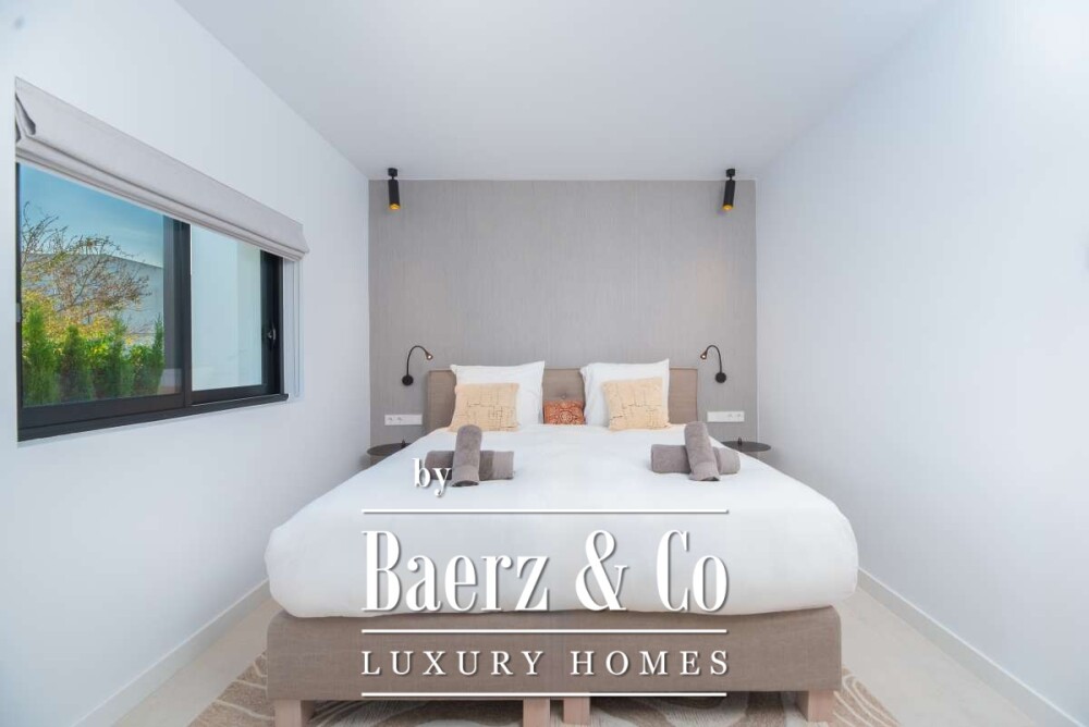 De omgevingOntdek deze prachtige villa in Can Ramón, het perfecte onderkomen voor wie op zoek is naar een luxe en ontspannen levensstijl op Ibiza. Deze woning biedt de perfecte mix van pure elegantie in een rustige omgeving en is makkelijk te bereiken vanuit zowel de charmante lokale dorpjes als het dynamische stadsleven van het eiland. Ibiza-Stad ligt op slechts 10 minuten afstand en biedt een levendige mix van cultuur, uitstekende restaurants en leuke boetiekjes. Daarnaast nodigt het nabijgelegen dorp Jesús u uit om het authentieke Ibiza te ontdekken met gezellige lokale eettentjes en ambachtelijke winkeltjes. De glamoureuze Marina Botafoch biedt een ruime keuze aan toprestaurants en stijlvolle bars, en is perfect voor een avondje uit, op slechts een steenworp afstand. Deze woonlocatie biedt ook een uitstekende verbinding met de haven voor degenen met een passie voor jachten. Als strandliefhebber kunt u uw dagen ontspannen doorbrengen op het goudgele zand van het nabije Talamanca Beach. Bovendien kunt u binnen 30 minuten rijden het familievriendelijke strand van Cala Llonga verkennen, het sfeervolle Cala Nova, of de kristalheldere wateren van Cala San Vicente. Deze villa is een uitstekende uitvalsbasis om te genieten van Ibiza's vele favoriete stranden. Met de luchthaven op slechts 15 minuten rijden, biedt deze accommodatie ongeëvenaard gemak voor frequente reizigers. Villa Can Palau biedt de perfecte luxe woonervaring in een mediterrane chique woonstijl.De villaGeniet van dit prachtig ontworpen luxe object, dat moderne elegantie combineert met bohemian-chique accenten. Dit geweldige huis heeft 5 ruime slaapkamers en 5 luxe badkamers, wat het een ideaal huis maakt voor een groot gezin of voor het ontvangen van gasten, vrienden of familie op regelmatige basis. De lichte en frisse open woon- en eetkamer heeft een moderne grote open haard, die een gezellige sfeer creëert voor onvergetelijke avonden. De eethoek biedt plaats aan 10 gasten, zodat er voldoende ruimte is voor uitgebreide diners en spelavonden. De open moderne, volledig uitgeruste keuken heeft een strakke marmeren keuken bar, ideaal voor ontbijt of een drankje 's avonds met uw gasten. Op de bovenverdieping vindt u de slaapkamers, elk doordacht ontworpen met ingebouwde kasten en en-suite badkamers, versierd met luxe marmeren afwerking, gouden armaturen en inloopdouches. De master slaapkamer valt op met zijn vrijstaande moderne bad, inclusief sereen uitzicht over het platteland. Dit uitzonderlijke eigendom combineert luxe en comfort, waardoor het de perfecte keuze is als uw thuis op Ibiza, het gehele jaar door.De buitenruimtesVanuit de woonkamer stapt u naar buiten op een overdekte patio waar u een grote eettafel vindt, perfect om buiten te dineren met vrienden en familie. Geniet van maaltijden vanaf de ingebouwde barbecue buiten, met uitzicht op uw schitterende privé zwembad, het platteland van Ibiza en de weelderige bergen. Ontspan op een van de ligbedden met kussens of neem een duik in het grote zwembad. Als de avond valt, kunt u samenkomen in de geïntegreerde buitenlounge met een gezellige vuurplaats. Deze tuin biedt eindeloze mogelijkheden voor ontspanning en vermaak. Op de eerste verdieping wacht een groot overdekt balkon met een spectaculair uitzicht over het prachtige landschap van de Balearen. Op de bovenste verdieping ontdekt u een fantastisch dakterras dat een idyllische plek biedt om te zonnebaden, te ontspannen met een boek of zelfs te genieten van een mediterrane siësta. Het pand is volledig omheind, waardoor veiligheid en privacy gegarandeerd zijn. Daarnaast biedt de villa een parkeergarage en een buiten parkeerplaats voor meerdere auto's, wat het gemak en de veiligheid ten goede komt. Ervaar de perfecte mix van comfort en natuur in deze uitzonderlijke villa. Uw ultieme mediterrane luxe levensstijl begint hier.