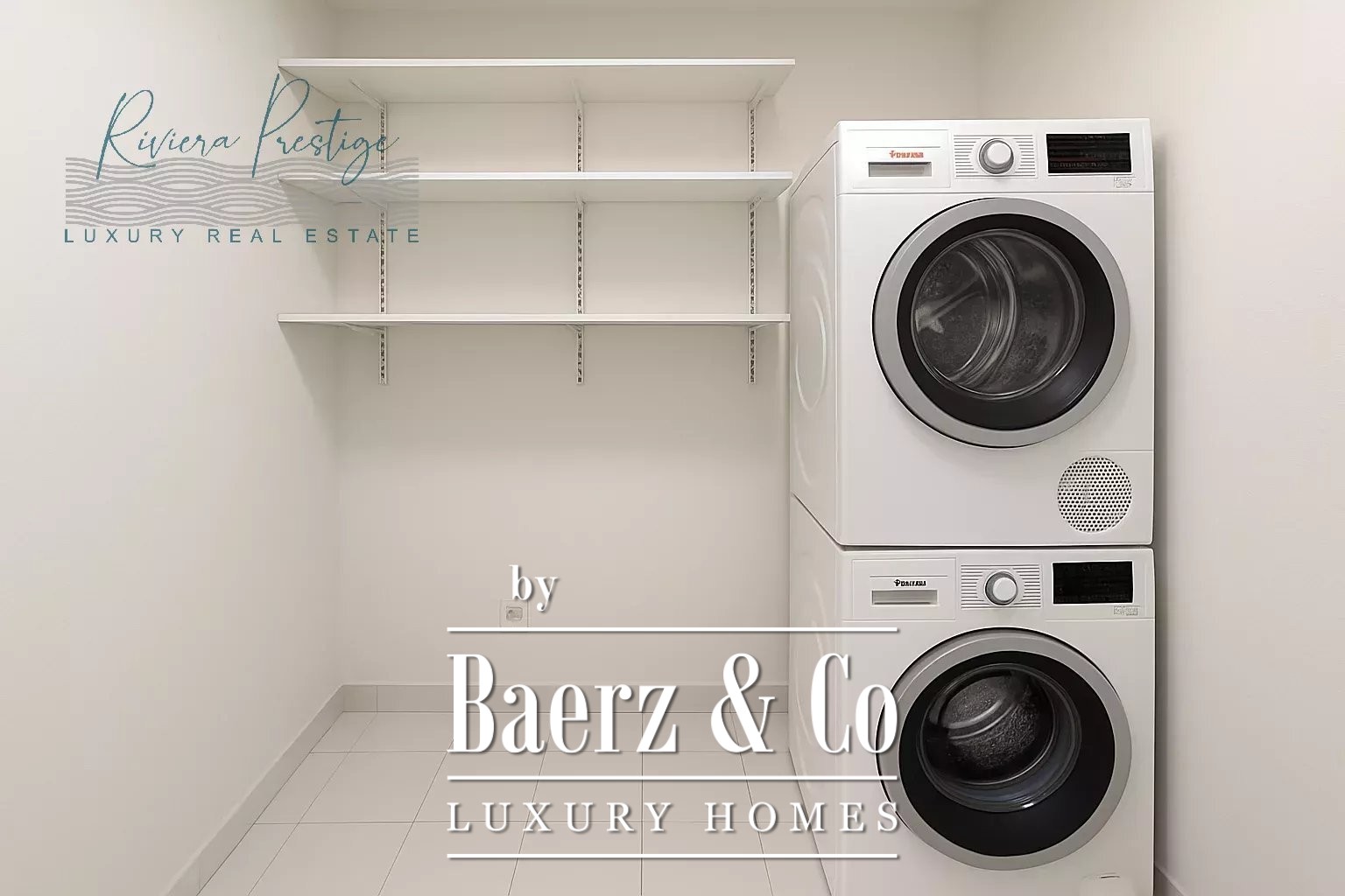Achter het panoramische terras biedt de indeling een zorgvuldige balans tussen privacy en openheid. De hoofdsuite van 22 m² biedt een serene retraite met hammam-douche, apart toilet en kleedruimte. Twee extra slaapkamers, van respectievelijk 24 m² en 12 m², worden aangevuld door een badkamer, gastentoilet en een doordacht ingerichte keuken. Daarnaast is er een wasruimte met de mogelijkheid een extra doucheruimte toe te voegen, wat flexibiliteit geeft bij veranderende woonwensen.