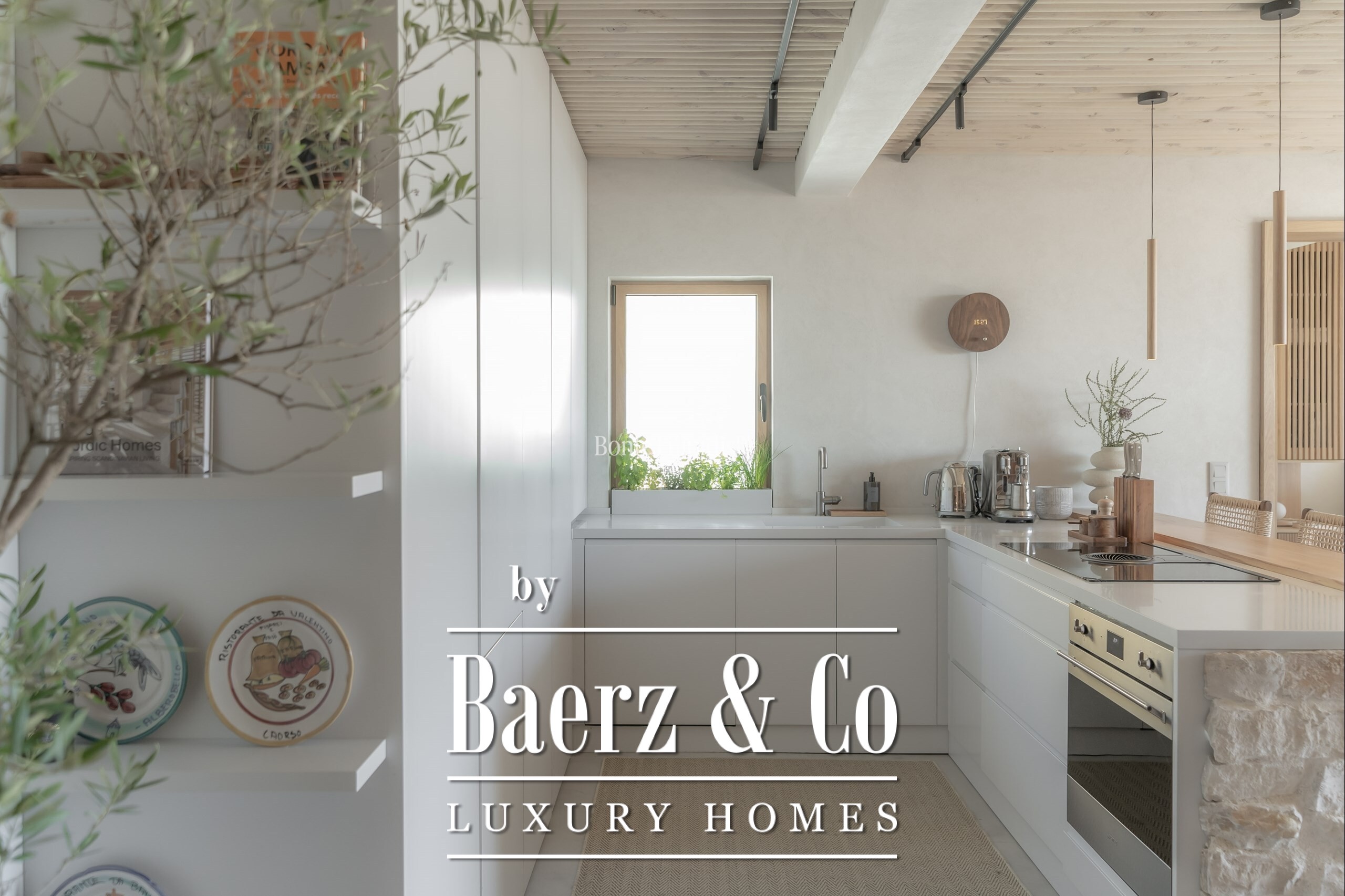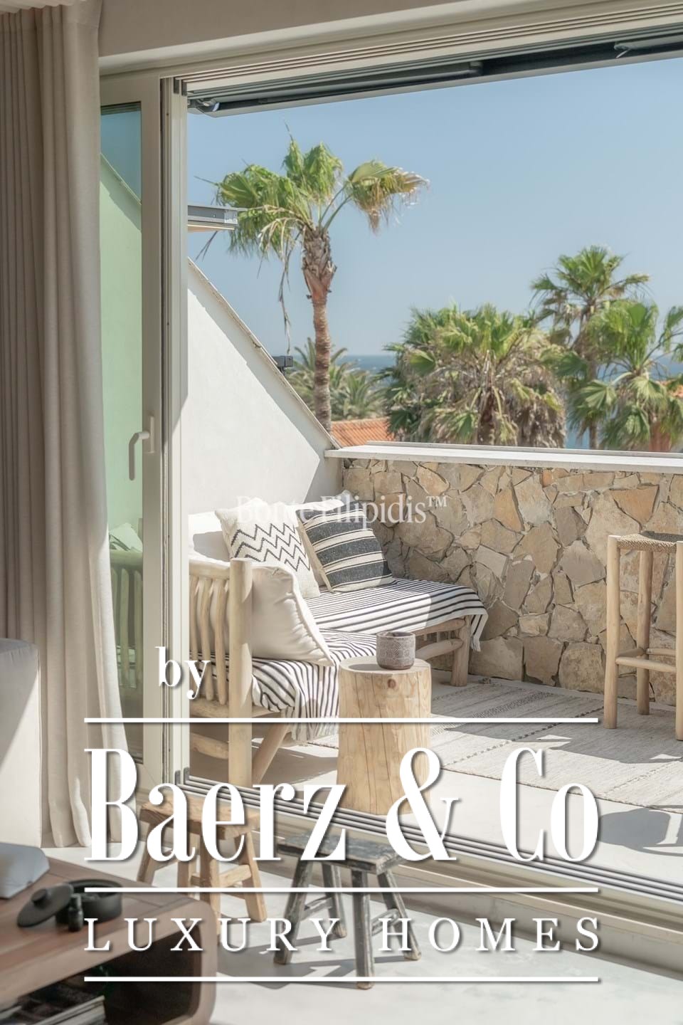 Met een woonoppervlakte van 88 m² sluiten de open woonkamer, eetruimte en keuken naadloos op elkaar aan, voorzien van hoogwaardige afwerking en volledig geïntegreerde apparatuur. De woonkamer leidt naar een terras van 19 m² met bar en een buitendouche om verkoeling te zoeken onder de lucht, met een sereen uitzicht op de baai. In het privégedeelte waarborgt de en-suite slaapkamer privacy, terwijl de tweede slaapkamer met zeezicht een eigen balkon en een aparte, complete badkamer biedt.