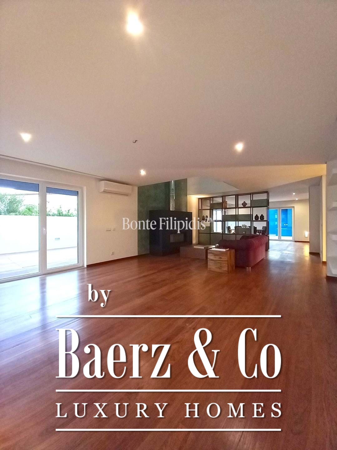 Op de benedenverdieping is veelzijdigheid troef. De garage van 61,49 m², een personeels- of logeersuite met eigen toegang vanaf de straat, een homecinema van 31,29 m², een entertainmentruimte van 74,39 m² en een wijnkelder van 31,59 m² bieden samen een as voor ontspanning en privacy. Multifunctionele ruimtes kunnen dienstdoen als fitness, spa of speelkamer, afhankelijk van de behoefte. Door het hele huis garanderen vloerverwarming, airconditioning, ook in het souterrain, en voorgeïnstalleerde home-entertainmentsystemen een verfijnde en comfortabele leefomgeving. De lokale voorzieningen—dichtbij restaurants, stranden, golfbanen, scholen en stedelijke verbindingen—maken het plaatje voor eigentijds wonen in deze villa in Cascais e Estoril compleet.