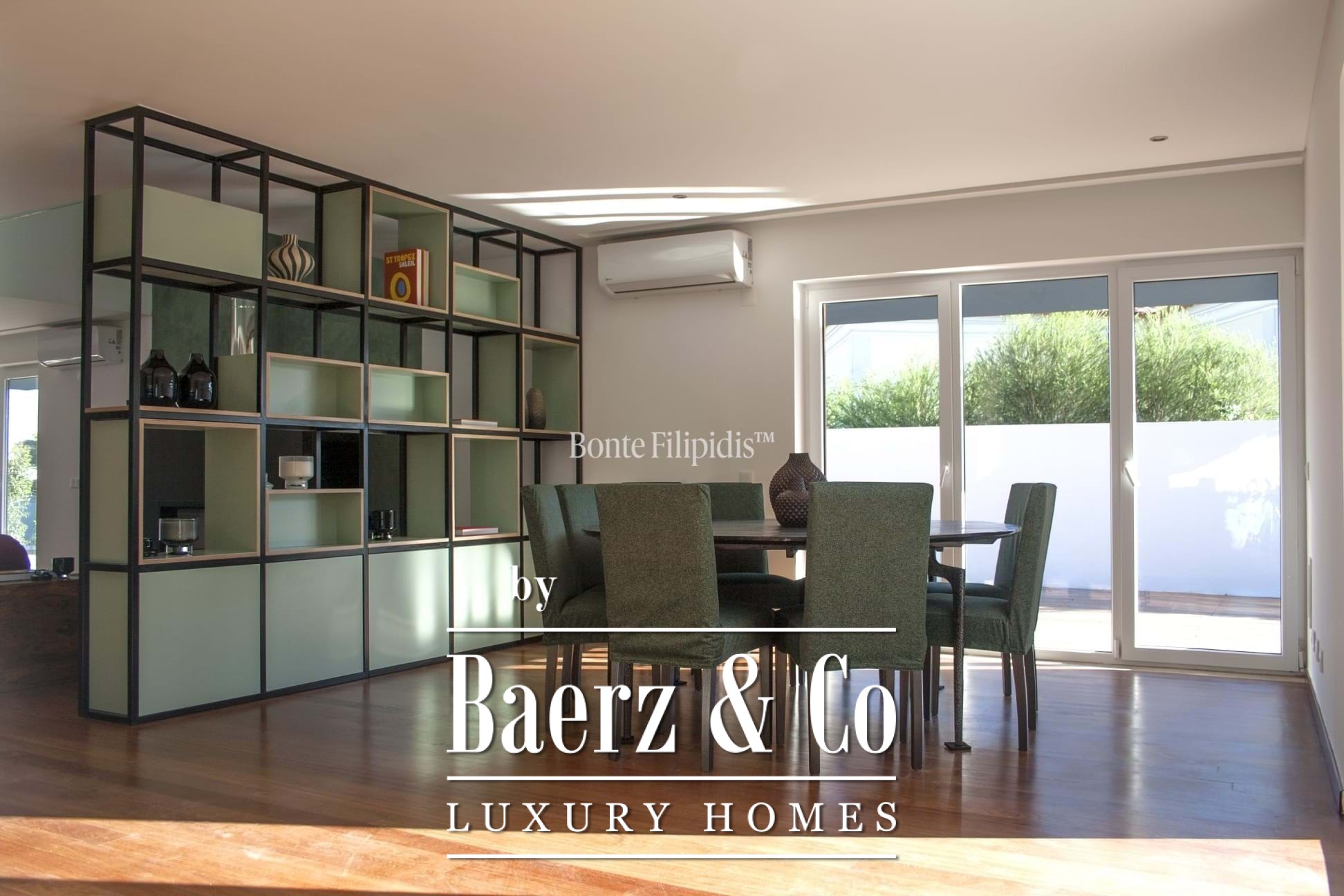 Villa Cascais e Estoril biedt 598 m² aan zorgvuldig vormgegeven woonruimte en belichaamt een harmonie tussen privacy en sociabiliteit. Deze villa met vijf slaapkamers is verdeeld over drie verdiepingen, waarbij het ontwerp evenveel aandacht besteedt aan dagelijks comfort als aan momenten van samenzijn. Bij binnenkomst overheerst een gevoel van ruimtelijkheid; de woonkamer en eetkamer van 65,64 m² openen direct naar 499 m² buitenruimte, waardoor de tuin en het het hele jaar door verwarmde zoutwaterzwembad naadloos worden geïntegreerd. De hoofdverdieping strekt zich uit tot een volledig uitgeruste keuken, een gastentoilet en een slaapkamer met badkamer en suite, met een doordachte doorstroming tussen de sociale zones.