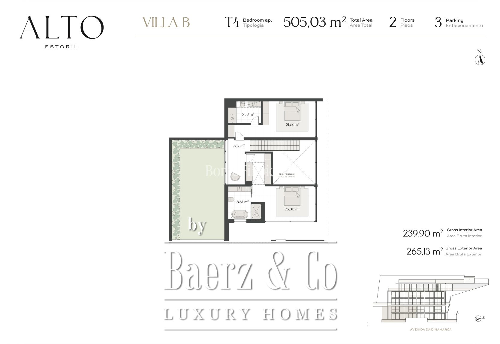 Een aangelegde tuin en privaat zwembad verplaatsen het wooncomfort naar buiten en bieden rust en privacy binnen een beveiligd wooncomplex. Essentiële voorzieningen zijn onder meer een uitgeruste keuken, drie inpandige parkeerplaatsen, zonnepanelen voor warmwaterproductie en een voorbereidende installatie voor elektrisch laden. Bewoners profiteren van conciërgeservice, fitnessruimte en sauna, ondersteund door uitgebreide beveiligingssystemen en energielabel B. Alto Estoril plaatst gerenommeerde internationale scholen, restaurants, golfbanen, stranden en zorgvoorzieningen binnen handbereik, terwijl Lissabon op slechts 25 minuten afstand wacht—een eigentijdse villa die wonen op bestemming combineert met verfijnde eenvoud. De zeldzame combinatie van modern design, gebalanceerd licht en hoogwaardige voorzieningen maakt deze luxe villa te Cascais e Estoril tot een buitengewoon aanbod.