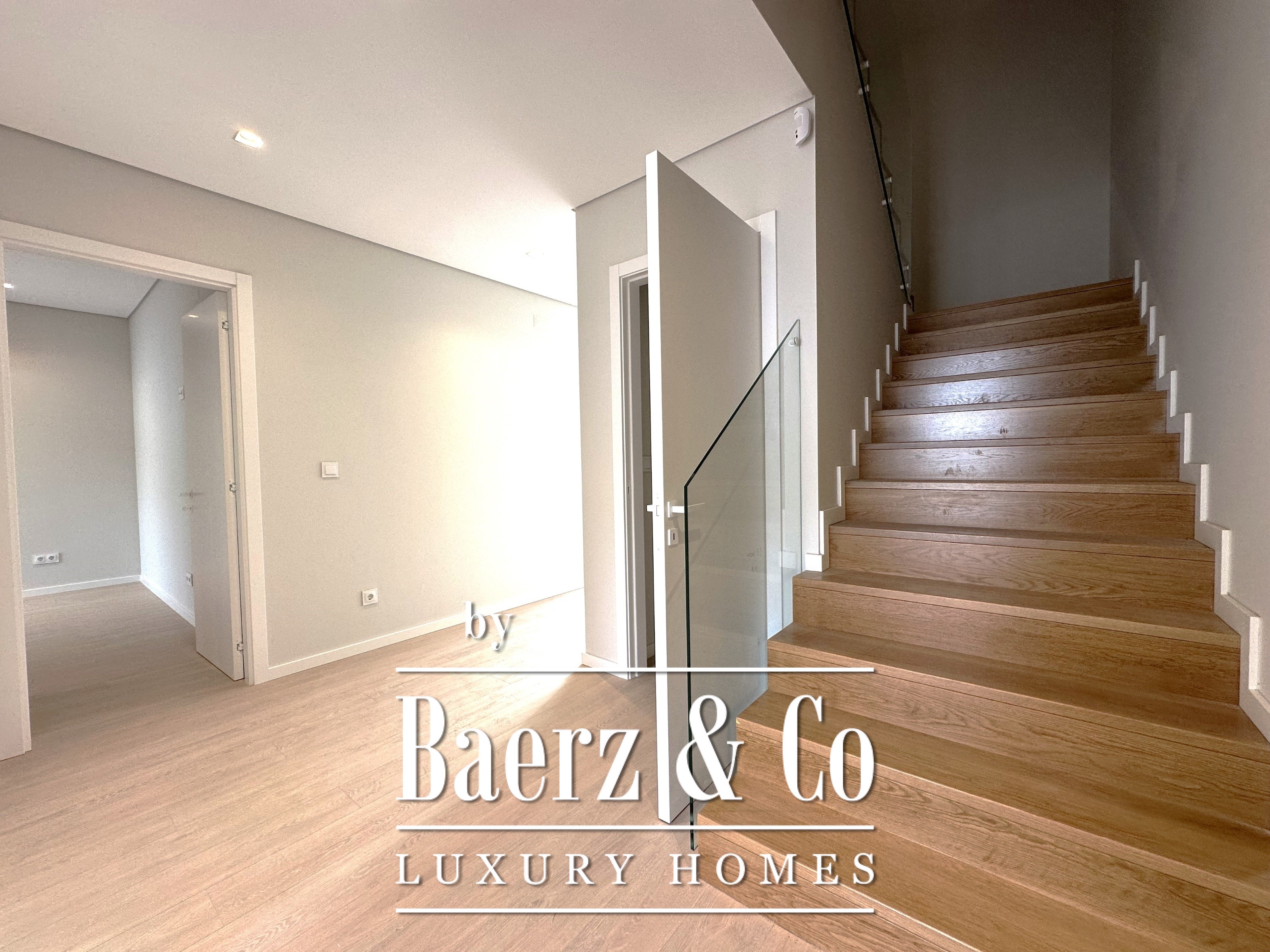 Buiten biedt een privéterras van 124 m² samen met een exclusief zwembad, ingebed in fraai aangelegde tuinen met fruitbomen en inheemse beplanting. Het perceel van 2.743 m² binnen het complex waarborgt zowel privacy als een gevoel van rust, met tuinen van opvallende omvang en kwaliteit. Geavanceerde domotica beheert zowel woning als tuin en brengt comfort samen met verfijnd wonen. Elk detail, van materiaalkeuze tot technische specificaties, is zorgvuldig geselecteerd voor een leven van discrete elegantie en functionele verfijning. Voor wie zoekt naar een toevluchtsoord in Cascais, vormt deze villa een zeldzame synergie tussen natuur, privacy en modern design.