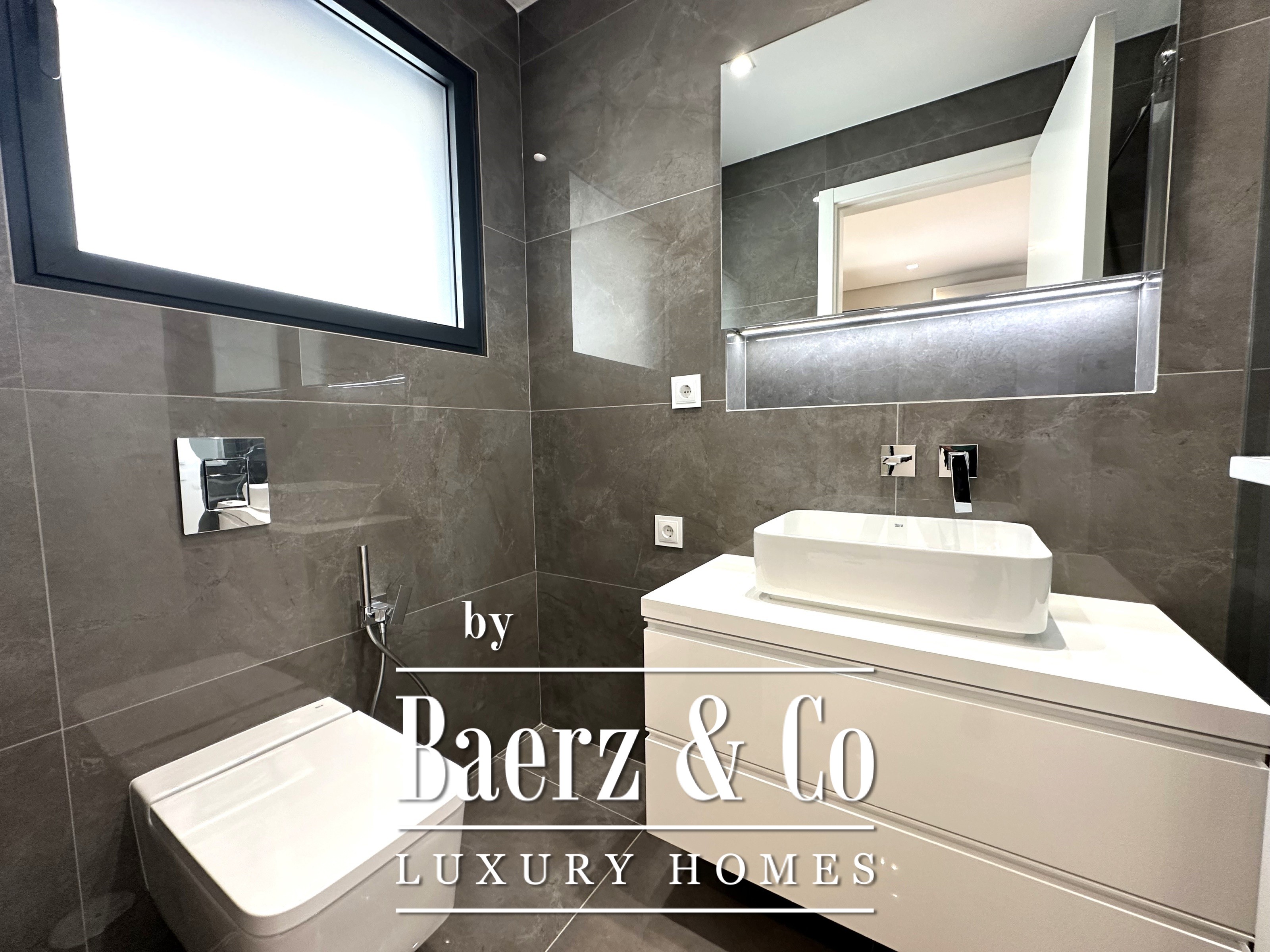 Het souterrain biedt drie verdere suites van 27 m², 13,43 m² en 12 m², elk afgewerkt volgens hoogwaardige standaarden. Doordat er geen inbouwkasten zijn, kunnen de interieurs volledig op maat worden gerealiseerd. Een royaal dakterras van 106 m² bekroont de woning en biedt uitzicht en ruimte voor ontspannen buitenleven, ondersteund door een technische ruimte van 27 m². Extra voorzieningen omvatten een privé garage van 72 m², een wasruimte van 8 m² en extra technische bergruimte.