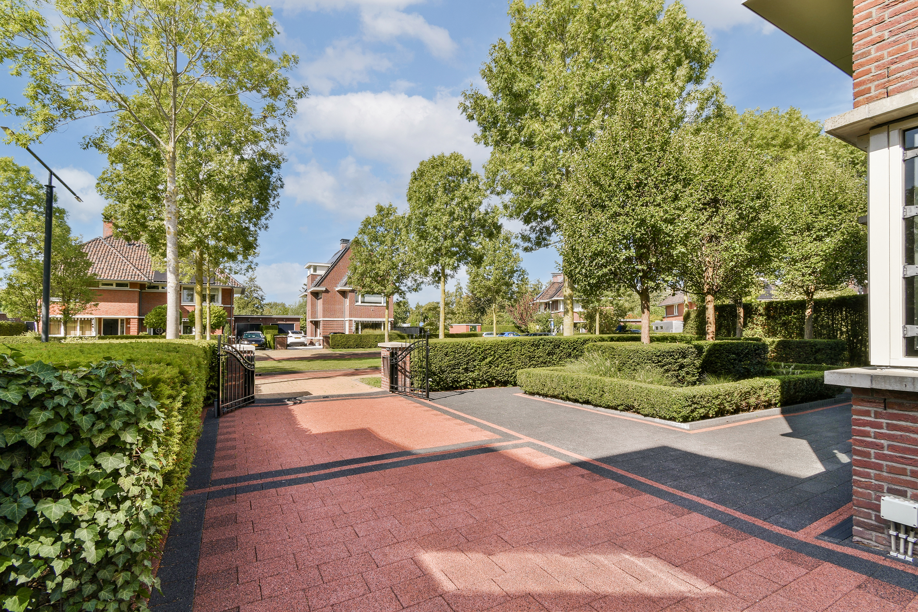 Aan de royale oprit met sierpoort (inclusief carport met lichtstraat in stijl van deze villa) begint het gevoel van thuiskomen al. Er is ruimte voor meerdere auto's (de laadpaal zal achterblijven).