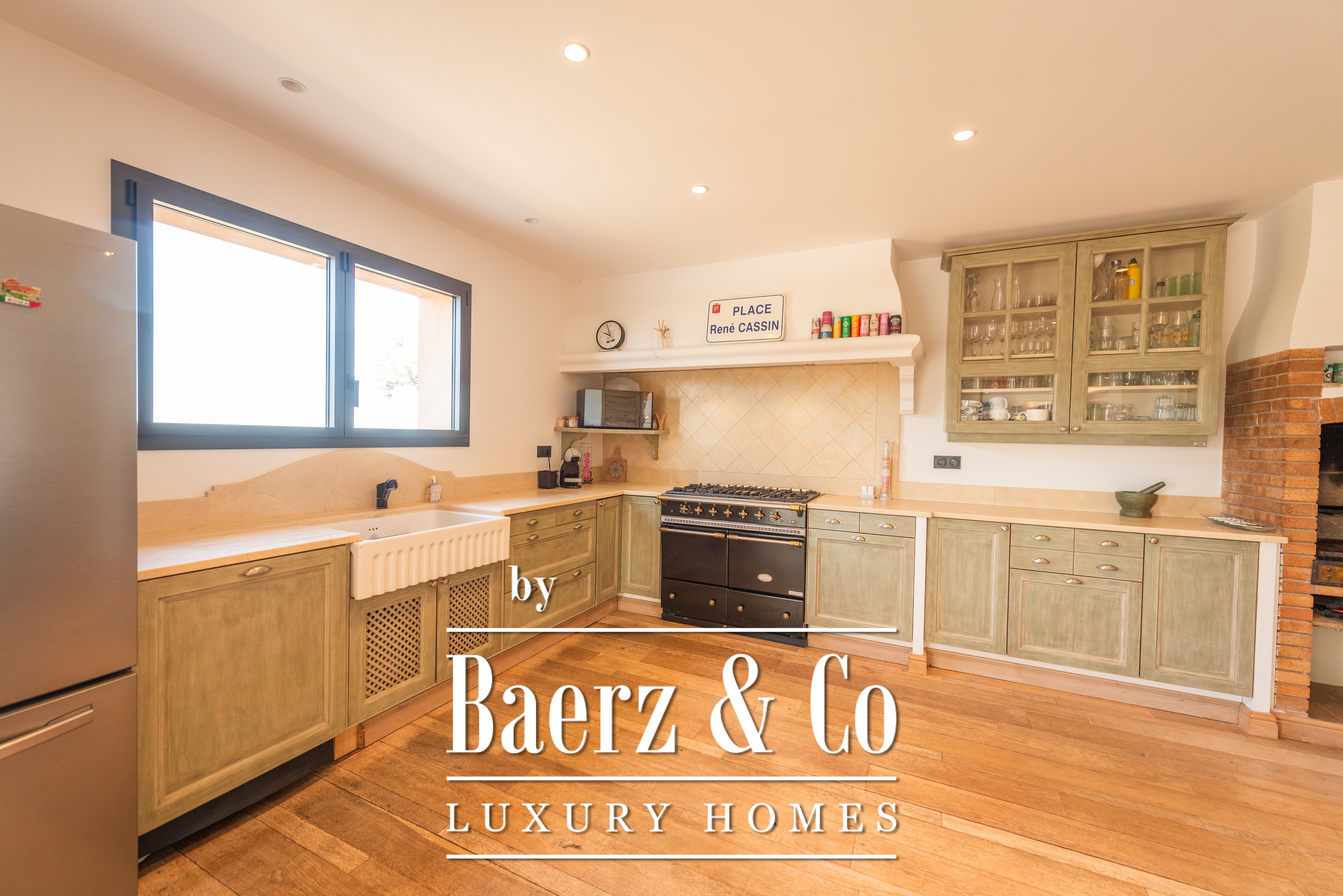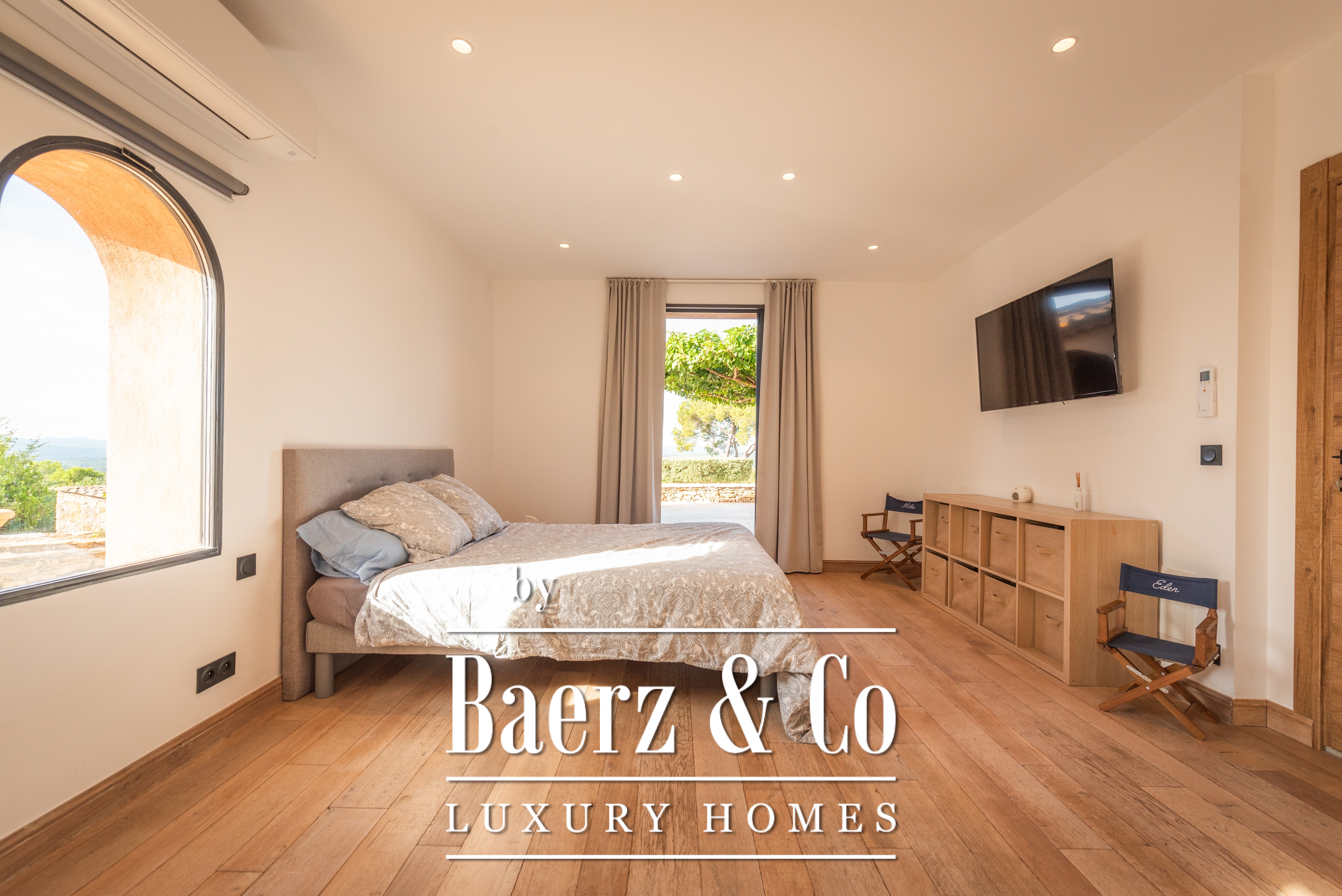 Villa Draguignan met panoramisch uitzicht op de bergen ligt boven de stad in een rustige heuvelomgeving, waar natuur en privacy de toon zetten. Het landgoed strekt zich uit over bijna 12.000 m² aan vredig terrein, met een wijds 180° vergezicht aan de horizon. De architectuur van de villa is ruim en weloverwogen; de hoofdwoning van 222 m² is doordrenkt van natuurlijk licht, terwijl het onafhankelijke gastenverblijf van 41 m² lager ligt en over een eigen entree beschikt.