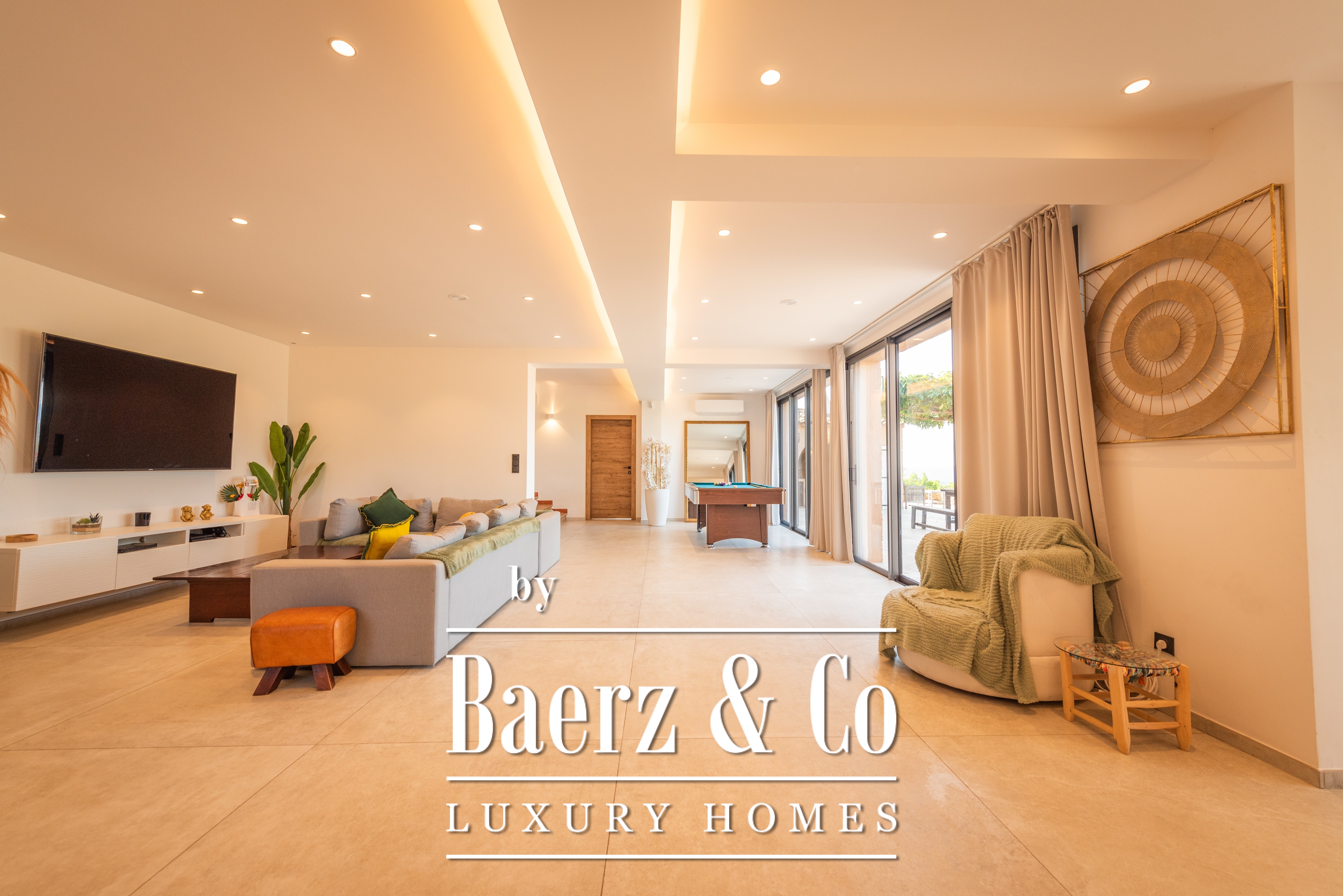 De hoofdwoning verwelkomt met een open leefruimte van 100 m², harmonieus en uitnodigend van opzet. Op de begane grond bevindt zich een master suite die directe privacy en comfort biedt; boven zijn twee extra slaapkamers, waarvan één met een privéterras met panoramisch uitzicht. Een zelfstandig studio, afzonderlijk toegankelijk, verhoogt de flexibiliteit discreet.