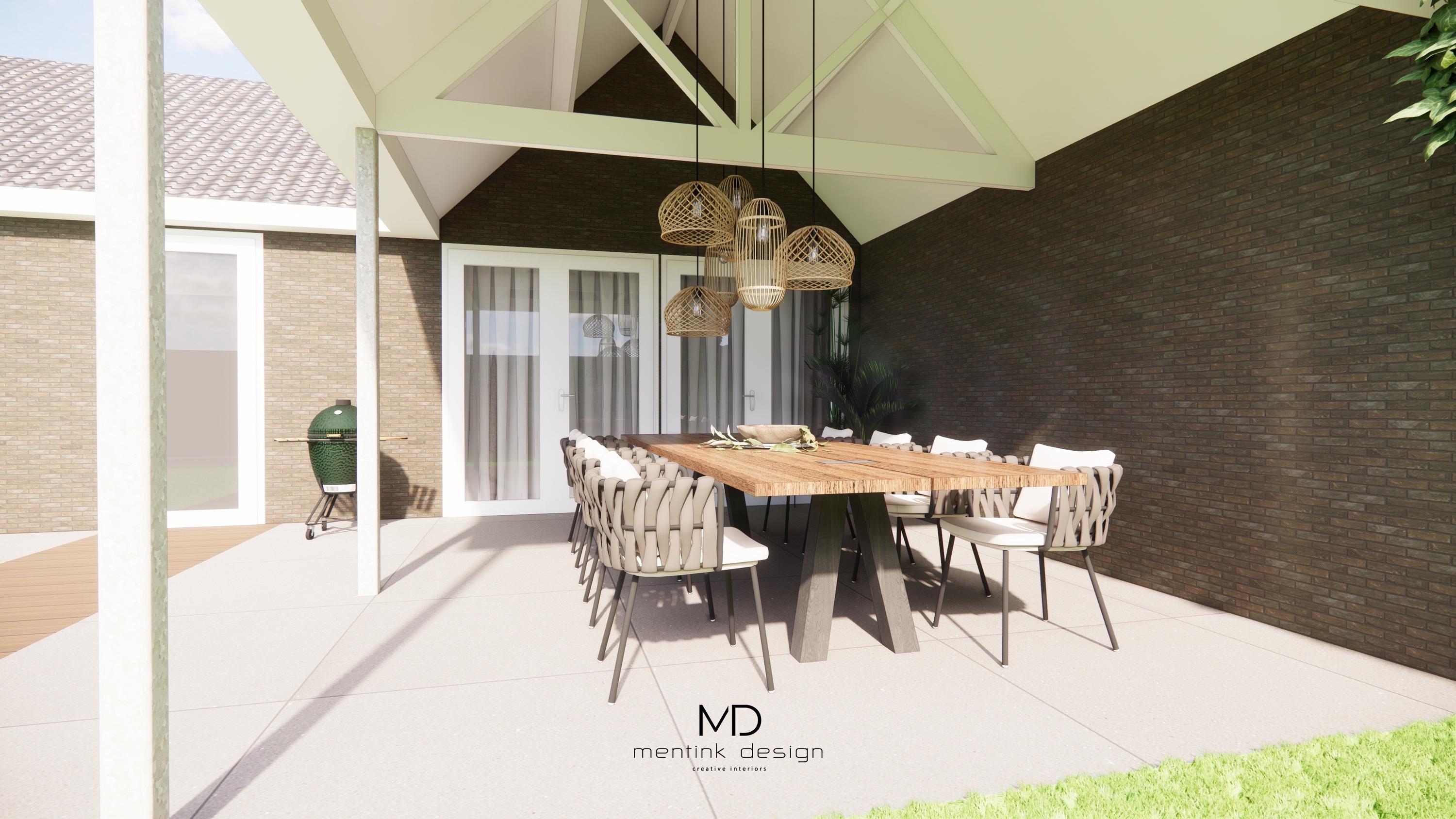 De zonnige achtertuin, gelegen op het zuiden, biedt volop privacy en is aangelegd met sierbestrating, gevarieerde beplanting en een verzorgd gazon. Direct grenzend aan het bijgebouw bevindt zich een royale terrasoverkapping met betonnen vloer – de ideale plek om tot in de avond van de zon te genieten. Hier is tevens alle ruimte om een sfeervolle buitenkeuken te realiseren.