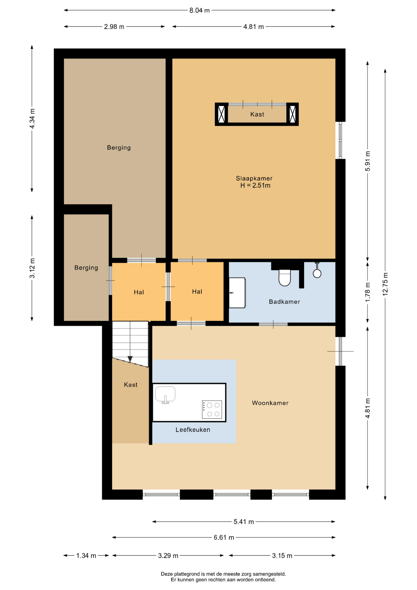 Verder is deze kamer voorzien van een praktische inbouwkast met wateraansluiting en afvoer, een royale kastenwand en een steektrap die toegang biedt tot een verrassend ruime vliering.