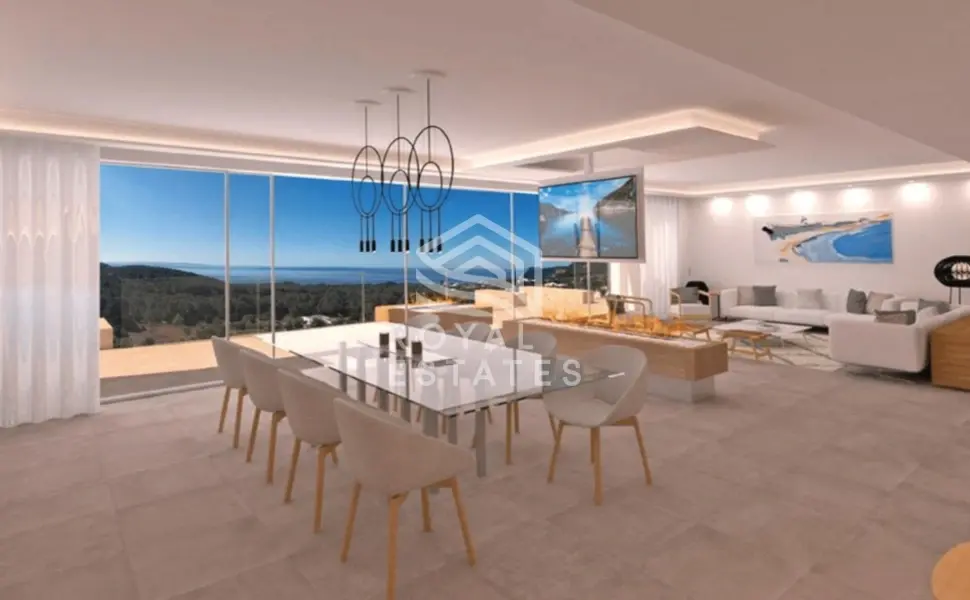 Een zwembad van 22 bij 5 meter vormt het centrale punt buiten, terwijl de ruime tuin- en terraszones voor een vloeiende overgang tussen binnen en buiten zorgen. Het forse souterrain biedt veelzijdige mogelijkheden voor een fitnessruimte, spa of thuisbioscoop, volledig afgestemd op persoonlijke wensen. Deze villa te koop in Es Cubells nadert voltooiing, met een rustige belijning en prachtige uitzichten die balans en privacy garanderen. De verhoogde ligging verzekert absolute rust, ideaal voor reflectie en gezamenlijke vieringen, op korte afstand van de iconische kustlijn van het eiland.