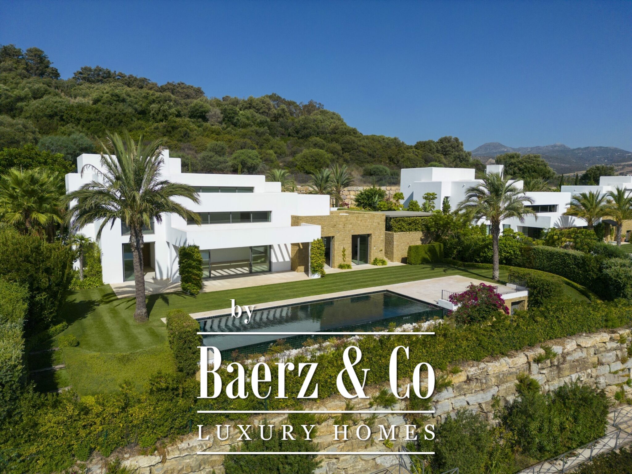 fully equipped with top-of-the-line Gaggenau appliances. Two guest rooms, with direct access to the garden, are thoughtfully located on the ground floor. The upper level of the villa is dedicated to the remaining bedrooms, each boasting its own private bathroom. The walkway connecting the rooms offers a picturesque view of the living area, creating an interior balcony-like experience. The property boasts sweeping vistas of the golf course and surrounding mountain range, providing an idyllic backdrop that radiates tranquillity and serenity. The property also has a private driveway for parking convenience within the plot. With its coveted location within the resort, this villa is an ideal haven for families or those seeking to embrace the luxurious Mediterranean lifestyle in all its splendour.