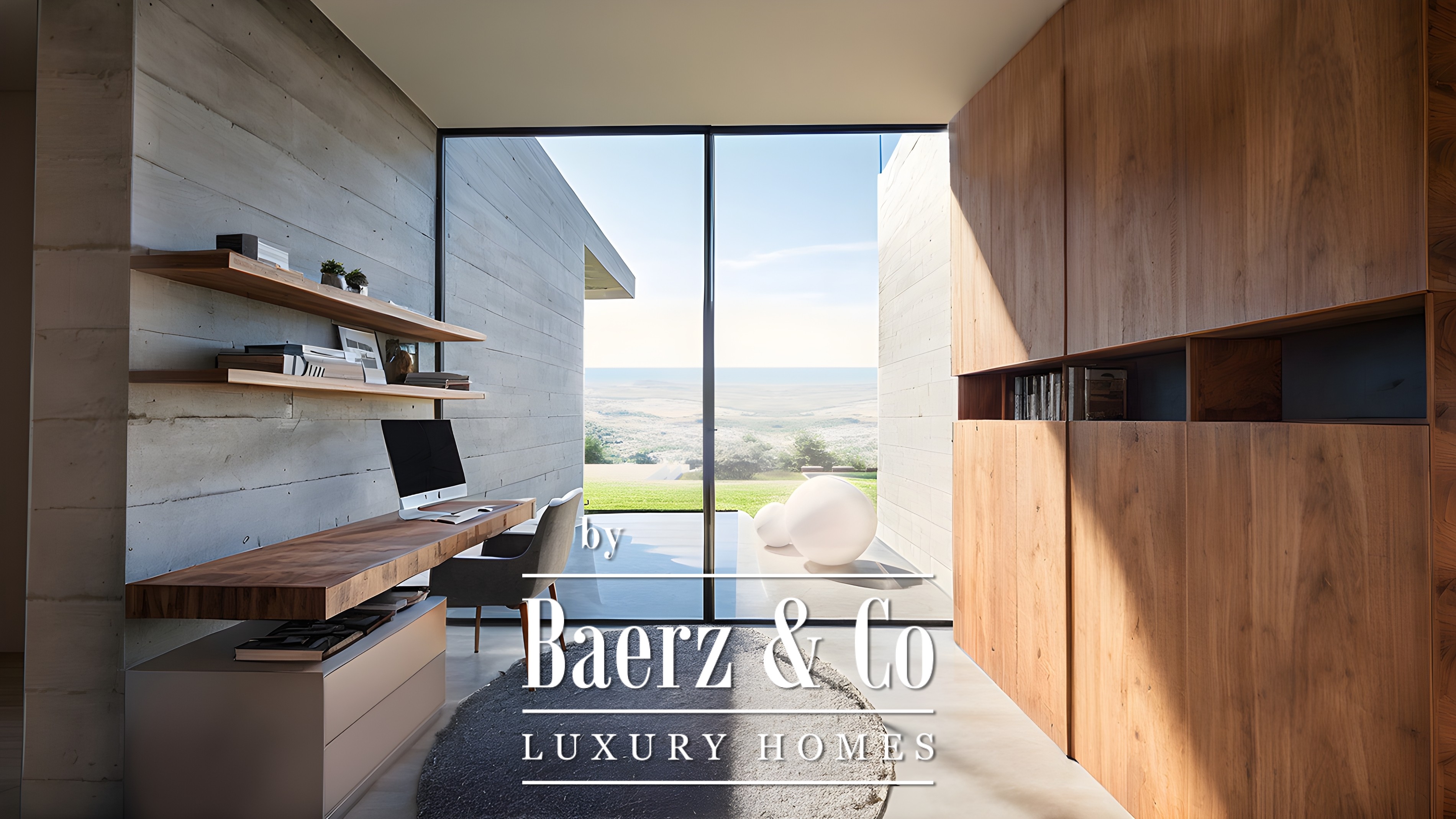 The exterior design combines exposed concrete, frameless aluminum carpentry and full-height windows that reinforce the luminosity and integration with the environment. Inside, natural stone coverings, large-format ceramics and noble woods stand out, providing warmth and sophistication.
