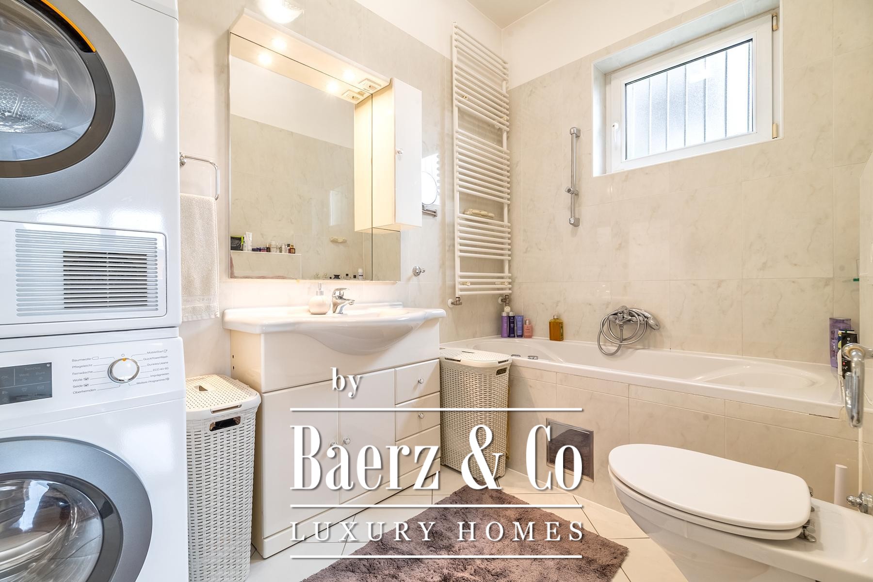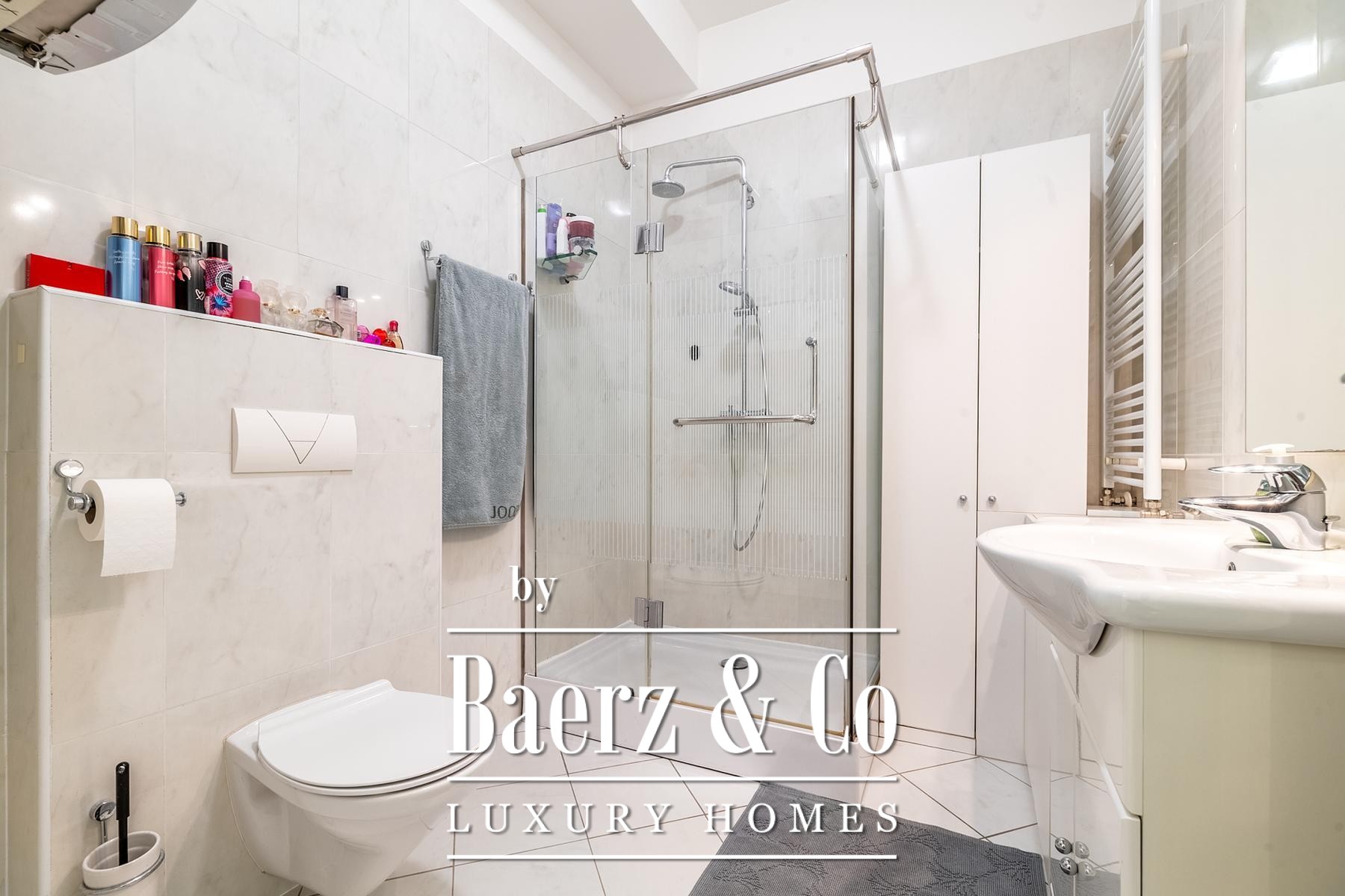 Voorzieningen omvatten centrale verwarming op gas, airconditioning, lifttoegang, twee garages, een buitenparkeerplaats en een berging. De noordoostelijke oriëntering van het appartement zorgt voor ochtendlicht en optimale privacy. Scholen, kinderdagverblijven, winkels en openbaar vervoer zijn vlot bereikbaar, wat bijdraagt aan een gezinsvriendelijke en kosmopolitische levensstijl.