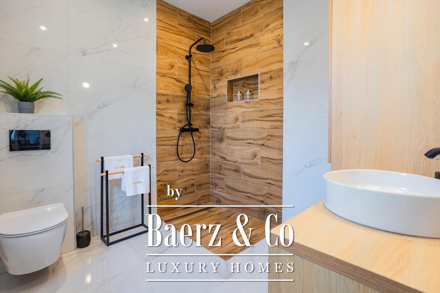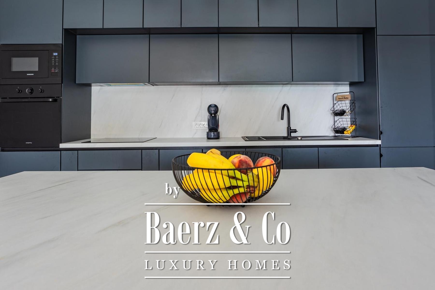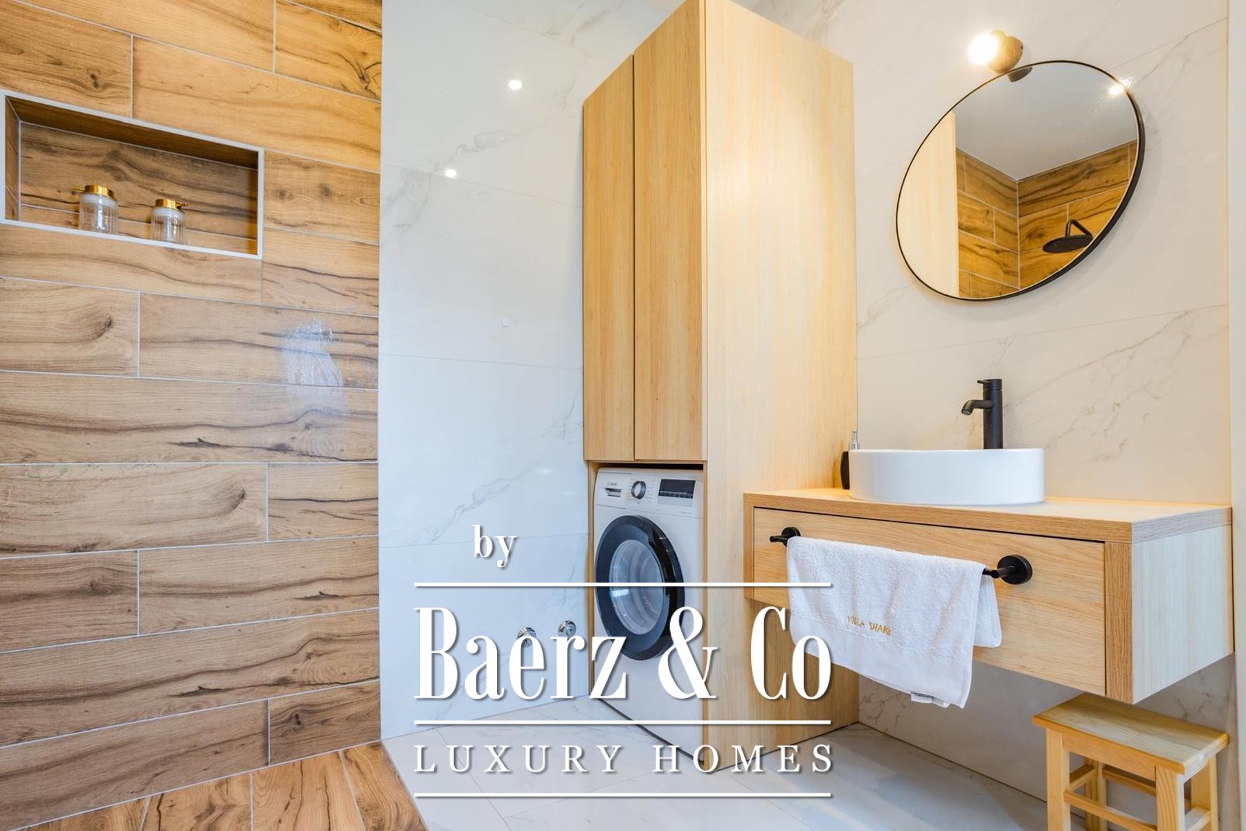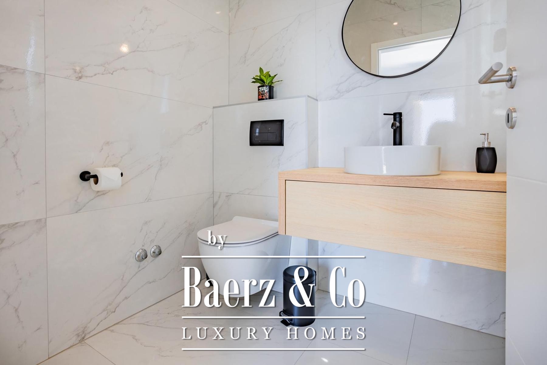 Op een perceel van 531 m² strekt de villa zich uit over drie verdiepingen, verbonden door een interne trap en lift, met circa 250 m² verfijnde leefruimte. De begane grond biedt een kinderkamer, een badkamer en een master suite met en suite badkamer, rondom een open keuken, eetruimte en royale woonkamer. De woonkamer grenst aan een aangelegde terrasvormige tuin, ingericht voor ontspanning en entertainment, compleet met zwembad, zonneterras met ligstoelen, overdekte lounge, bar, barbecue en een kinderspeelplaats.