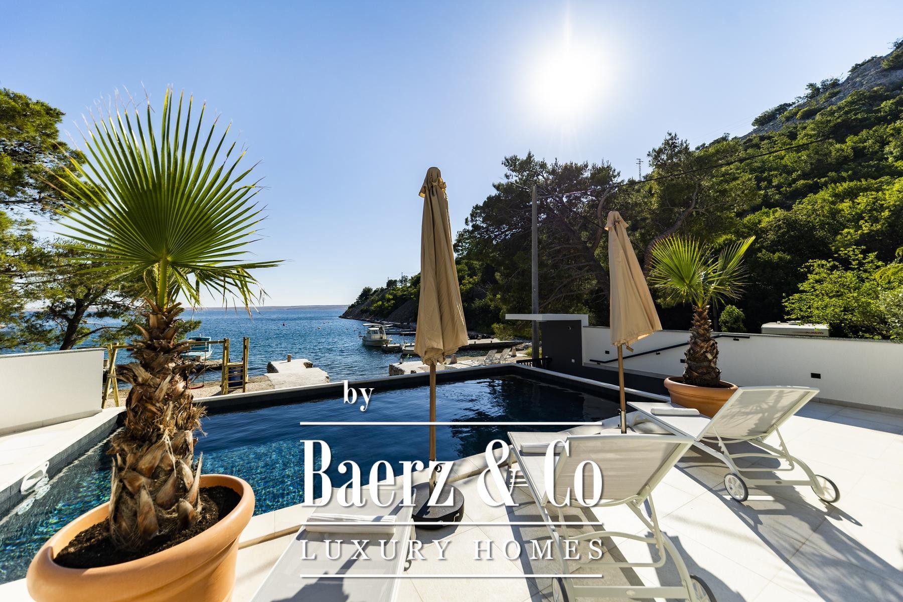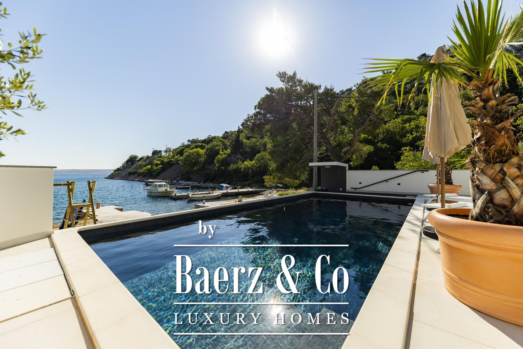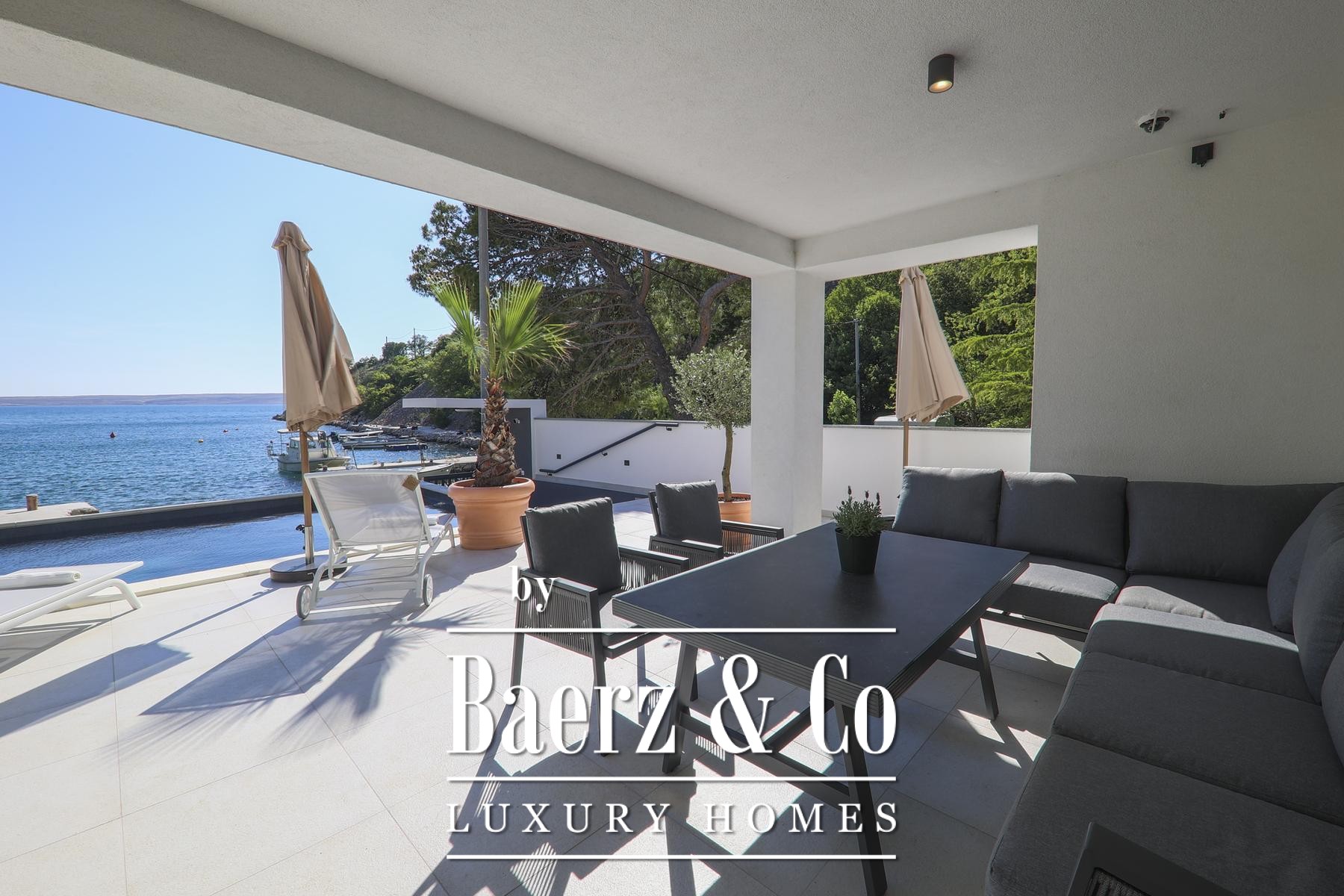 Grote driedubbel beglaasde, uitstekend geïsoleerde raampartijen laten het licht binnen en omlijsten het uitzicht op de Adriatische Zee, terwijl vloerverwarming en een haard een behaaglijk en rustgevend klimaat garanderen gedurende het hele jaar. De elegant ingedeelde hoofdwoonruimte loopt over in een moderne keuken, ontworpen voor zowel gebruiksgemak als verfijning. Buitenruimte nodigt uit tot ontspannen middagen bij het 32 m² grote zeewaterzwembad, in de jacuzzi, sauna of in de privéfitness, met directe toegang tot de zee en een steiger voorzien van een botenhelling voor jachtbezitters.