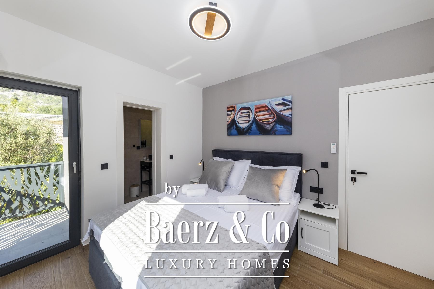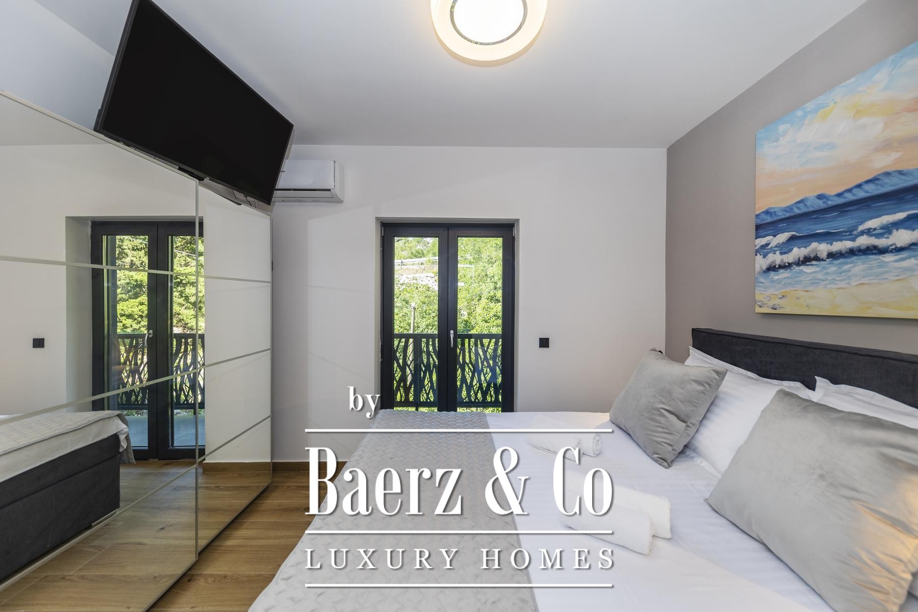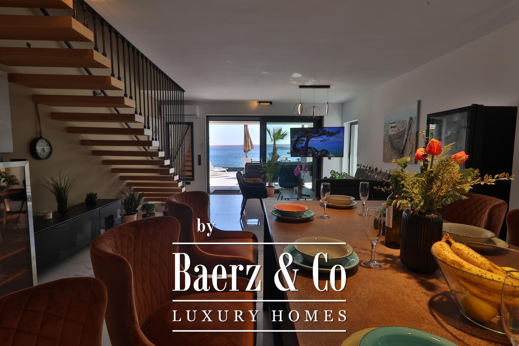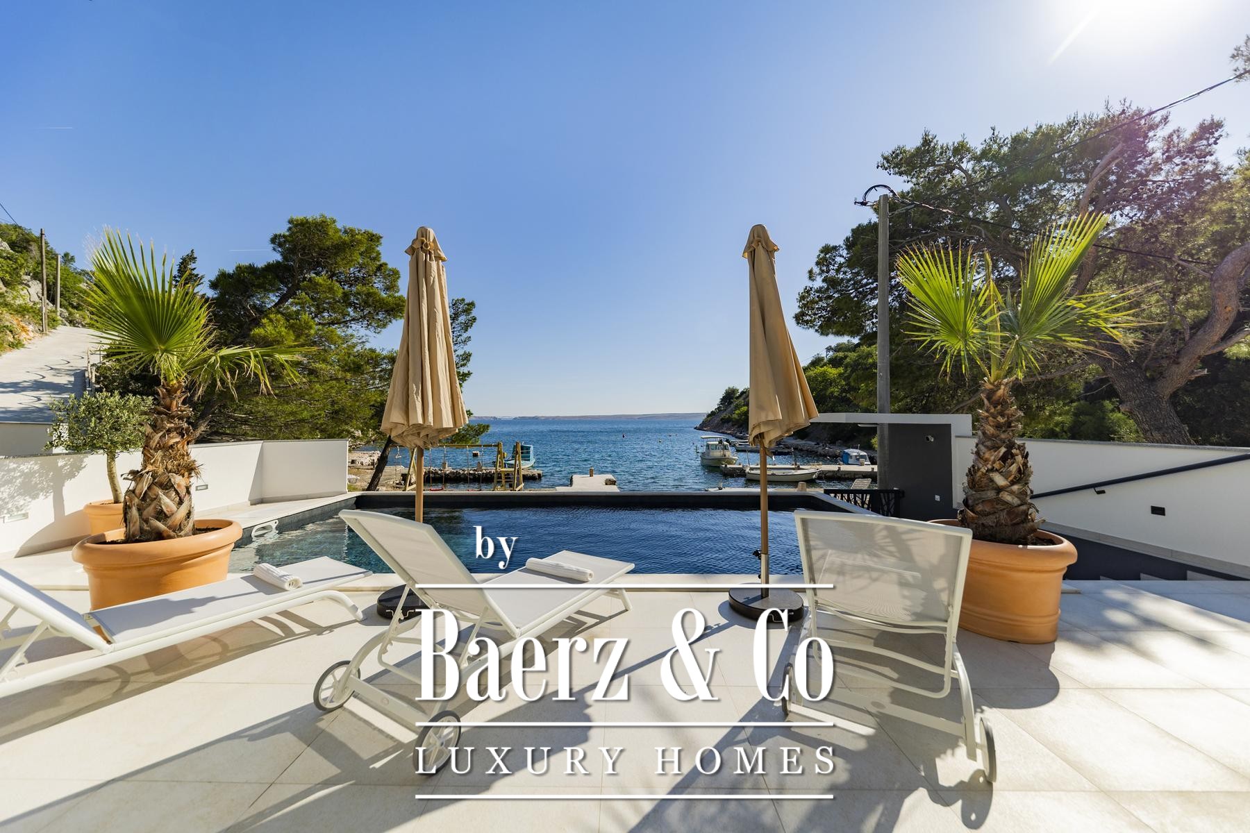 Grote driedubbel beglaasde, uitstekend geïsoleerde raampartijen laten het licht binnen en omlijsten het uitzicht op de Adriatische Zee, terwijl vloerverwarming en een haard een behaaglijk en rustgevend klimaat garanderen gedurende het hele jaar. De elegant ingedeelde hoofdwoonruimte loopt over in een moderne keuken, ontworpen voor zowel gebruiksgemak als verfijning. Buitenruimte nodigt uit tot ontspannen middagen bij het 32 m² grote zeewaterzwembad, in de jacuzzi, sauna of in de privéfitness, met directe toegang tot de zee en een steiger voorzien van een botenhelling voor jachtbezitters.