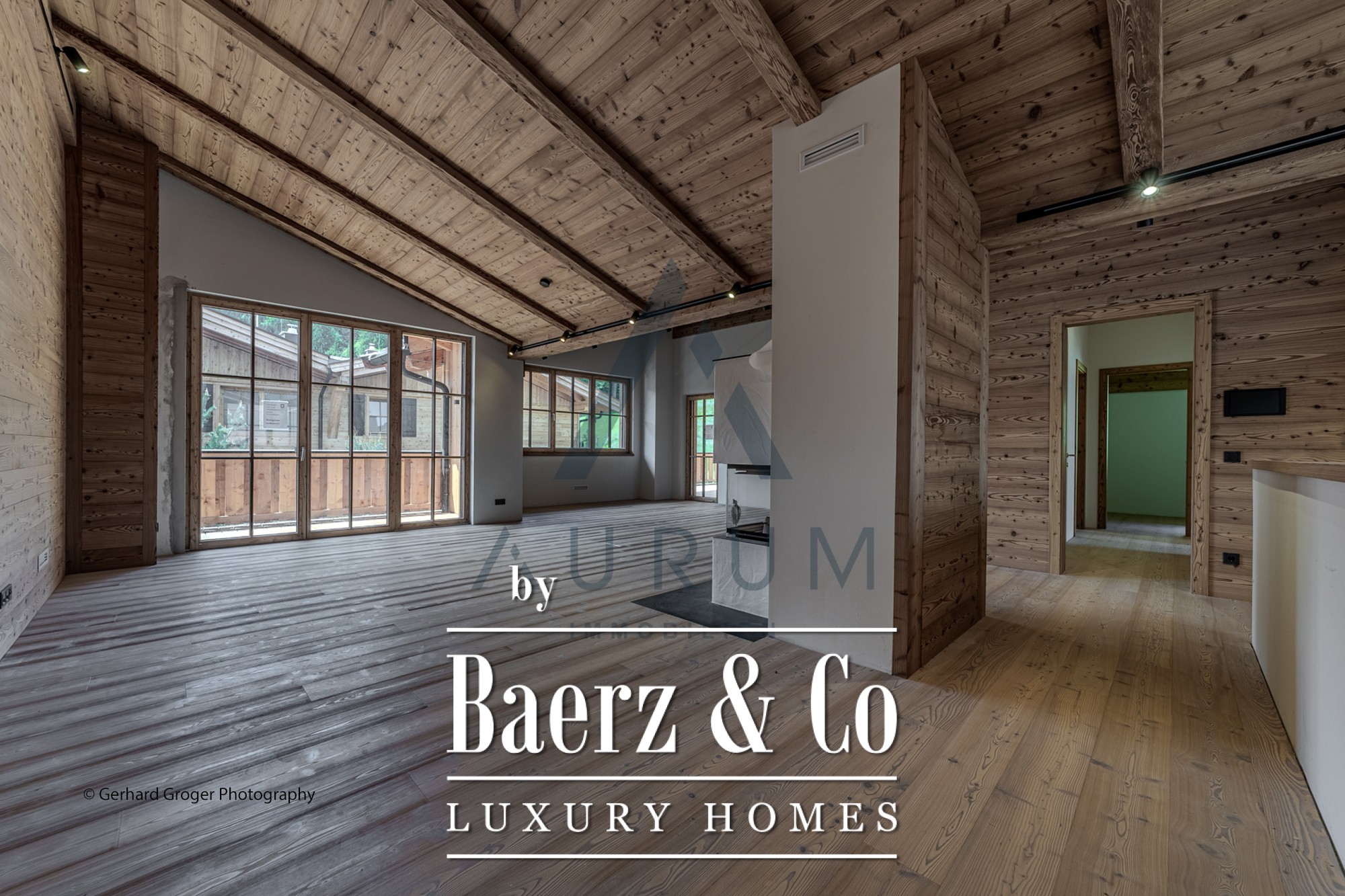 De open woon- en eetruimtes zijn licht en uitnodigend, met een open haard die na een dag op de piste of in de frisse berglucht uitnodigt tot rust. Uitgestrekte balkons tot 61 m² brengen het imposante berglandschap dichtbij en bieden in elk seizoen een privé-uitzicht. De afwerking kenmerkt zich door zorgvuldig gekozen materialen, van fijn larikshout en keramische tegels tot zichtbare dakspanten – ieder detail benadrukt de perfecte balans tussen esthetiek en functionaliteit.