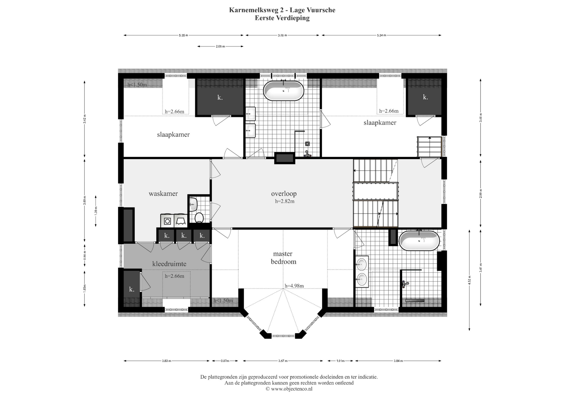 Alle informatie waaronder doch niet uitsluitend maatvoering heeft nadrukkelijk een indicatief karakter; er kunnen geen rechten aan worden ontleend. Verrekening wegens over- of ondermaat is uitgesloten. Het schriftelijkheidsvereiste wordt van toepassing verklaard. Aanbieding vrijblijvend, oplevering in overleg.