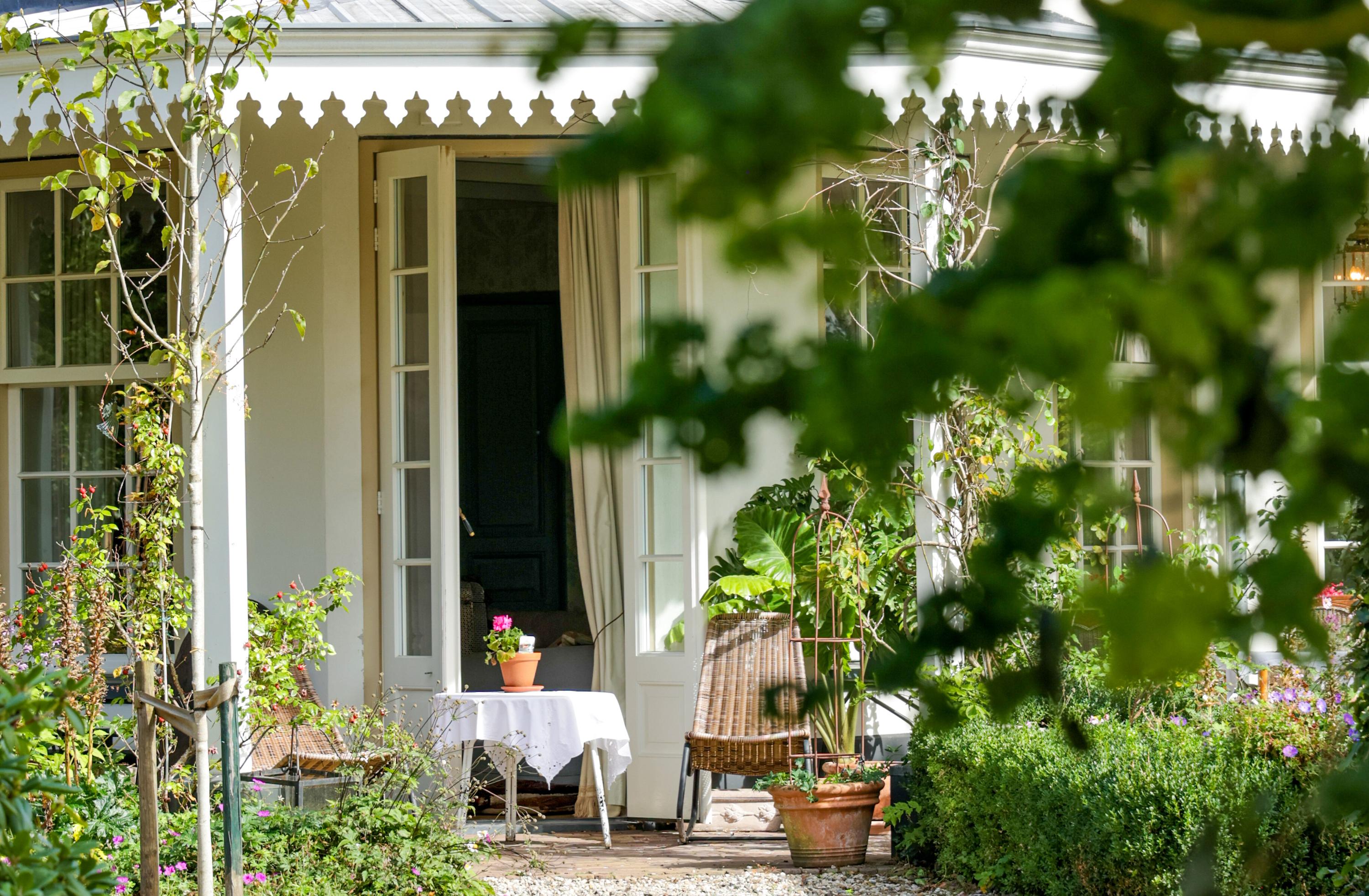 Al bij het binnenrijden door de eigen toegangspoort verandert de sfeer. De zorgvuldig aangelegde tuin, met fruitbomen en een kruidentuin, omarmt de villa. De villa straalt een ingetogen elegantie uit die uitnodigt om verder te kijken. Aan de voorzijde wacht de veranda – een plek waar je eindeloos kunt vertoeven, in de zon of juist beschut tijdens een zachte regenbui.