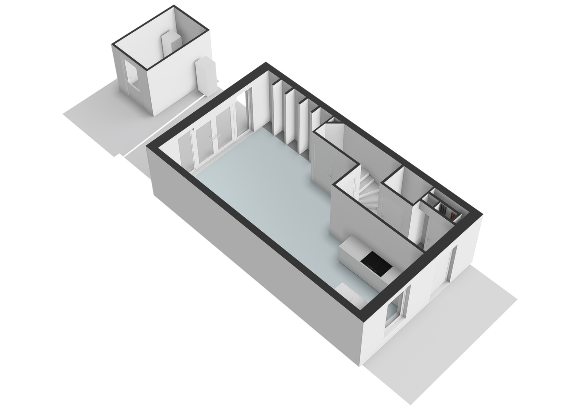 Via de entree komt u in de hal met meterkast en een modern zwevend toilet met fonteintje. Aan de voorzijde van de woning bevindt zich de open keuken, voorzien van diverse inbouwapparatuur en een ruim werkblad. De woonkamer ligt aan de tuinzijde en biedt middels openslaande deuren toegang tot de fraai aangelegde achtertuin. Daarnaast beschikt de begane grond over een praktische trapkast.