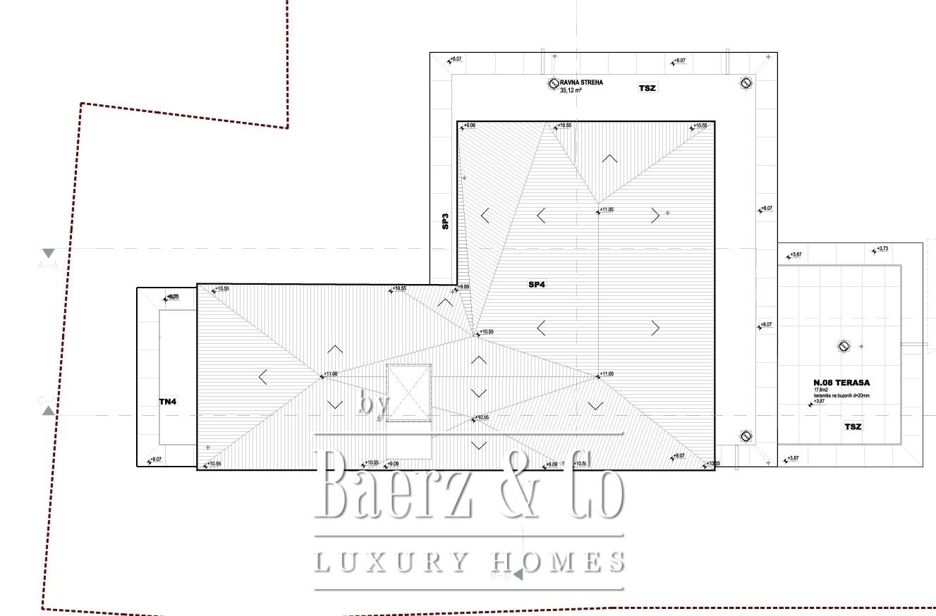 De doordachte indeling omvat vier slaapkamers en twee badkamers, royale open terrassen met een totaaloppervlak van 84 m², een technische ruimte van 11,5 m² en aparte utiliteitsruimtes van 34,5 m². De ligging biedt directe nabijheid van stedelijke voorzieningen; het Tivoli Park, de Rožnik heuvel en het stadscentrum zijn op korte afstand, net als scholen, gezondheidszorg, winkels en restaurants. Deze villa biedt een unieke kans op verfijnd, lichtovergoten wonen in het hart van Ljubljana.