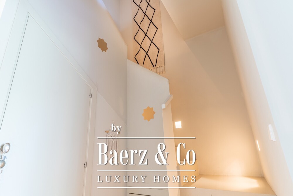 Dit huis van 269 m² met twee verdiepingen is zorgvuldig ontworpen om het karakter te behouden en tegelijkertijd moderne leefruimtes te creëren. De begane grond heeft een ruime, open woon- en eetkamer, een grote keuken met veel opbergruimte, die leidt naar een aangrenzend terras, een gastentoilet en een gezellige slaapkamer met eigen badkamer. Een elegante trap leidt naar de eerste verdieping waar zich drie lichte en grote slaapkamers met eigen badkamer en douche bevinden.