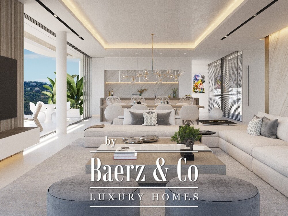 Elke villa, met een woonoppervlak van circa 500 m² exclusief terrassen en royale tuinen, staat op percelen variërend van 1.107 m² tot maar liefst 10.005 m². Riante, lichte leefruimtes worden versterkt door ramen die geheel in de wanden verdwijnen, zodat de lounge en het terras naadloos in elkaar overlopen. Binnen en buiten vloeien moeiteloos samen, waardoor het hele jaar door een mediterraan leefklimaat mogelijk is. Drie tot vier en-suite slaapkamers bieden maximale privacy en comfort; in geselecteerde woningen is parkeergelegenheid in een garage of onder een overkapping beschikbaar. Maatwerkmeubilair en zorgvuldig geselecteerde kunstwerken verheffen het interieur voor wie waarde hecht aan herkomst en individualiteit.