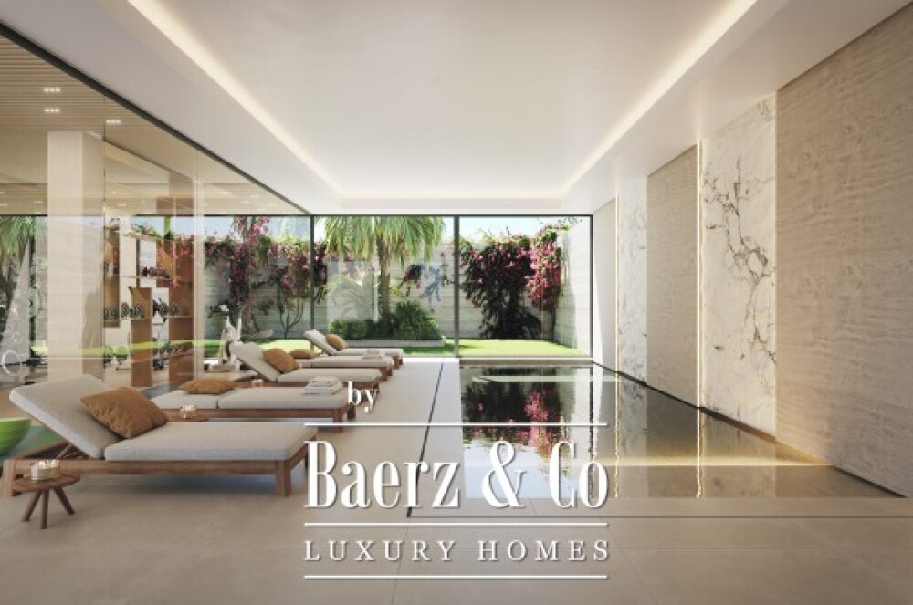Buiten omringt een vlak aangelegde tuin het 20 meter lange infinity zwembad en biedt een serene setting voor dineren en samenkomen onder het prieel. Voorzieningen als geavanceerde klimaatbeheersing, haarden, vloerverwarming en lift waarborgen maximaal comfort. Deze villa belichaamt de kalme cadans van het mediterrane leven, gecombineerd met gemakkelijke toegang tot de kust en voorzieningen van Marbella. Hier vindt men privacy, verfijning en een verheven levensstijl in Marbella.