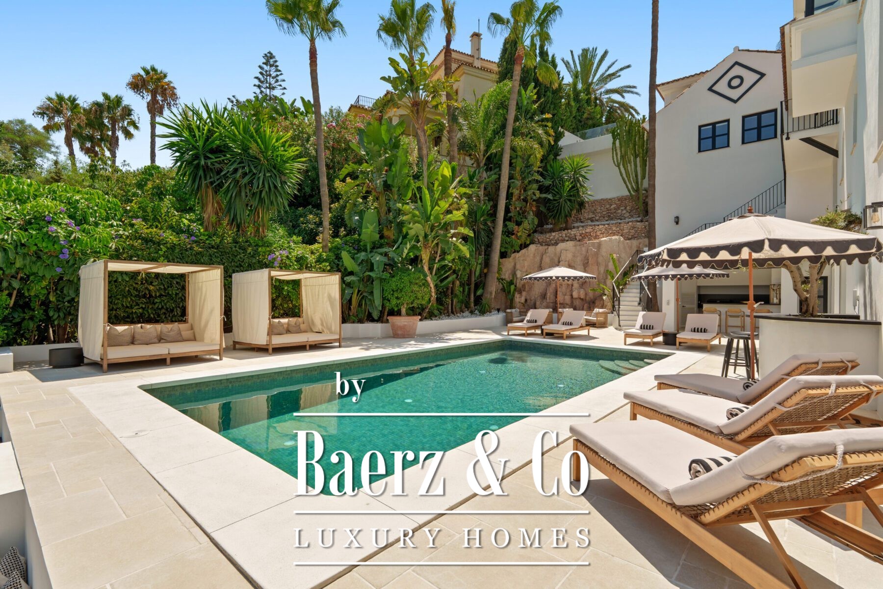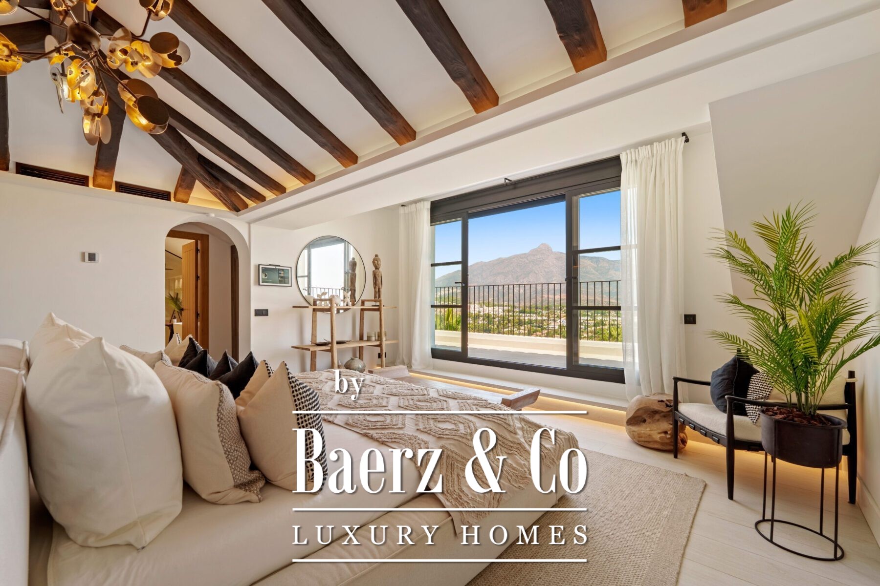 In the heart of the prestigious Nueva Andalucía, just minutes from world-class golf courses, Puerto Banús, and Marbella’s finest dining and shopping, stands this luxury villa as a masterpiece of modern Mediterranean living. This extraordinary five-level villa captures panoramic views of the Mediterranean Sea and the iconic La Concha mountain, blending timeless Andalusian charm with cutting-edge contemporary elegance.