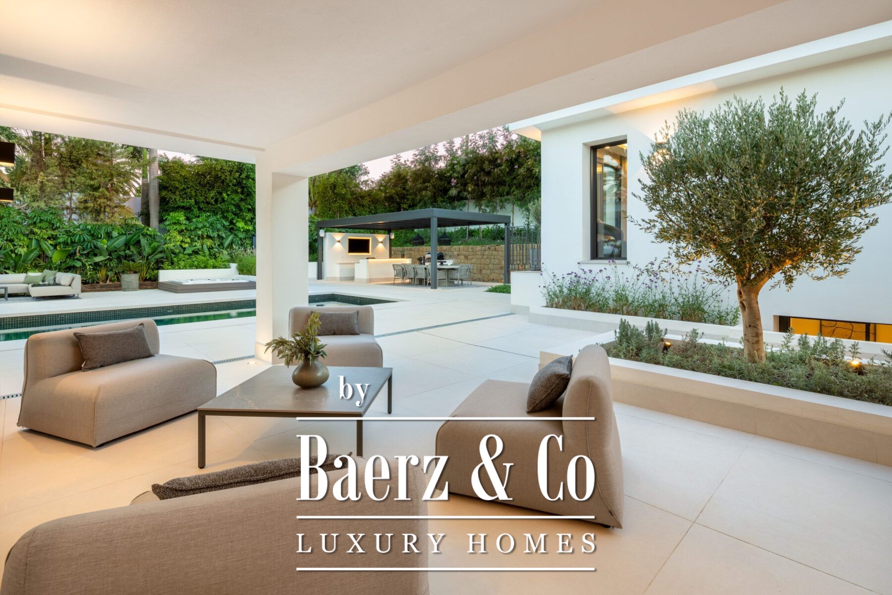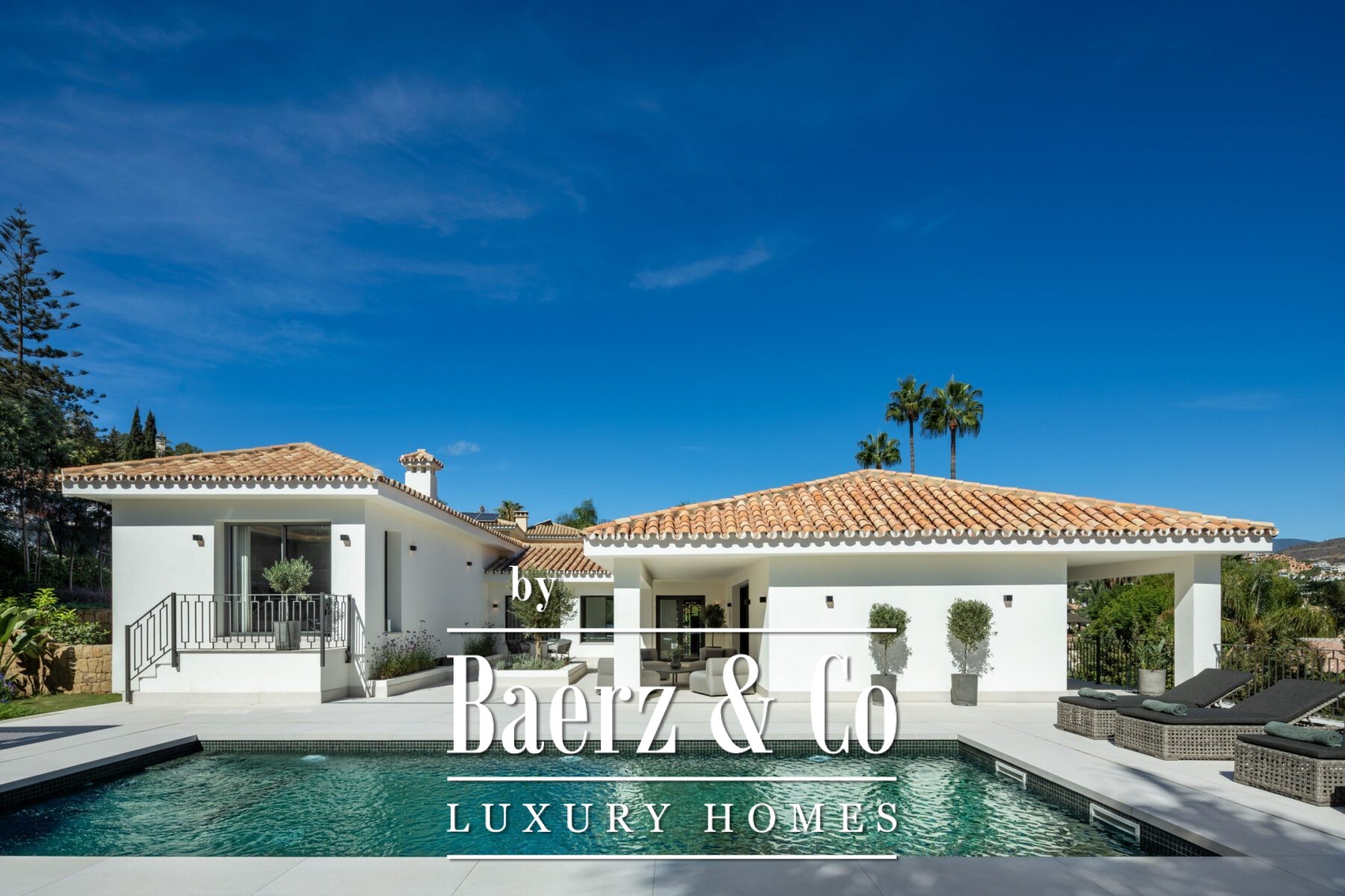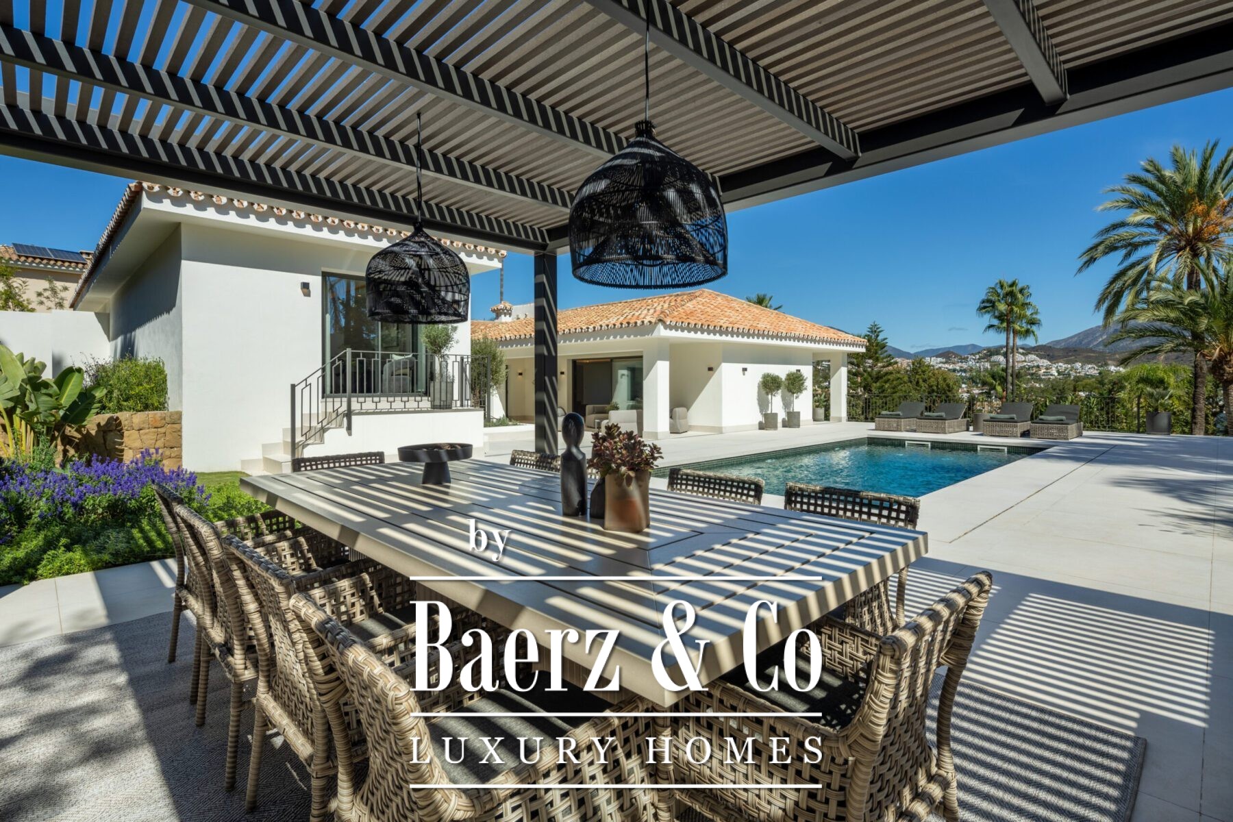 A captivating villa for sale located in the prestigious Nueva Andalucia Las Brisas, an area renowned for its stunning views of La Concha mountain and the Mediterranean Sea. This luxurious property, designed by a renowned architect firm exemplifies modern Scandinavian elegance blended with high-end comfort.