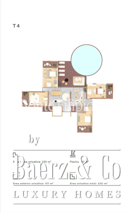 Villa Melides met privézwembad en uitzicht op de natuur biedt een serene combinatie van verfijnd wonen en een moeiteloze verbondenheid met de omgeving. Deze villa met vier slaapkamers beschikt over 235 m² aan binnenruimte, aangevuld met royale buitenruimten van in totaal 112 m², inclusief een privézwembad van 83 m². Het doordachte ontwerp nodigt uit tot een buitenleven, waarbij de terrassen uitkijken op het rustgevende ritme van het platteland – perfect voor intieme ontbijten in de ochtend of ontspannen zwemsessies bij schemering.