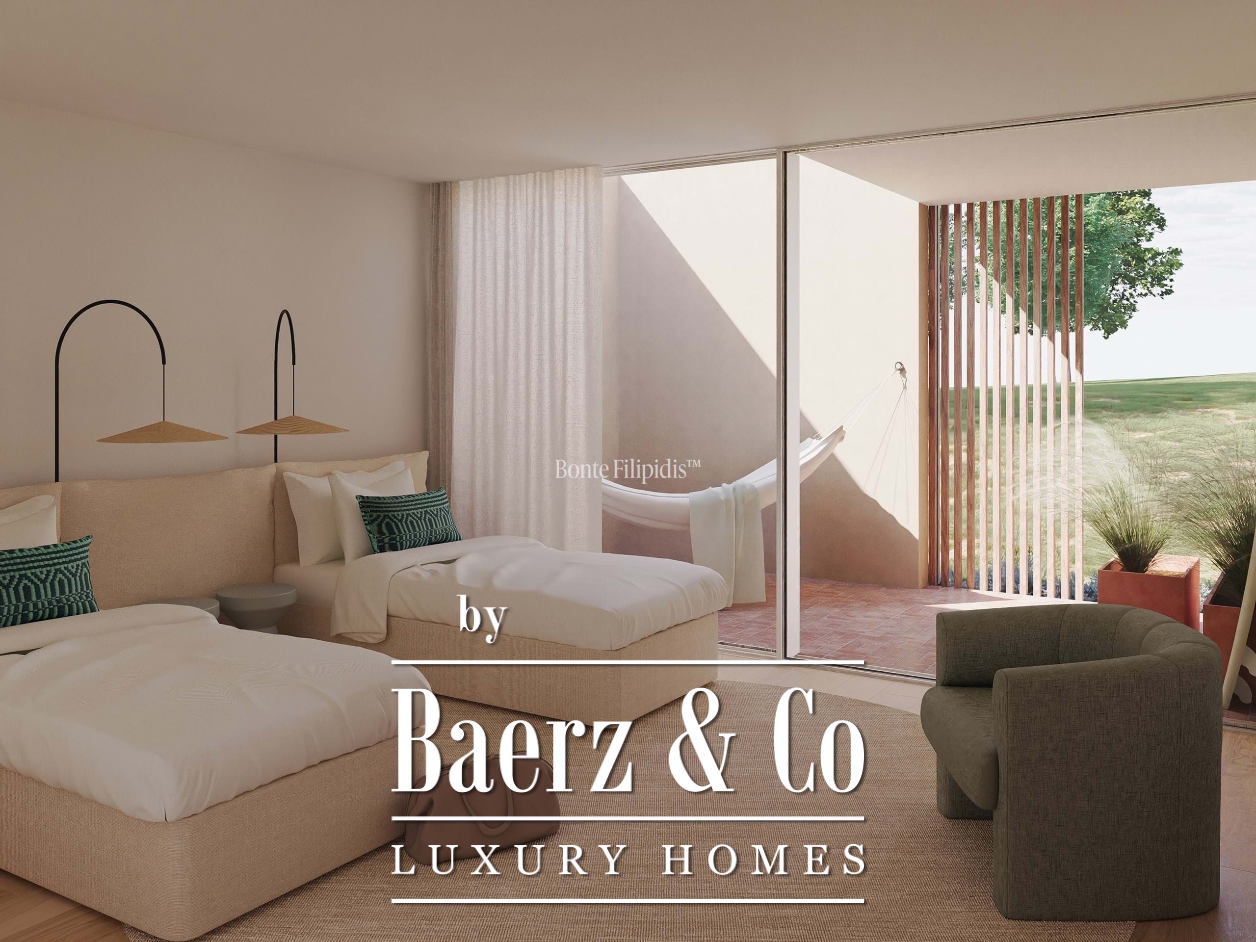 Riante buitenruimtes omarmen 112 m² en worden geaccentueerd door een privézwembad van 83 m², uitnodigend tot lange middagen in de zon of stille ochtenden aan het water. Elke woning is afgewerkt met zorgvuldige materiaalselectie, waarbij hout en natuursteen een sfeer van authenticiteit en warmte brengen, terwijl de architectuur van WEWOOD functionaliteit en verfijning harmonieus samenbrengt. De royale terrassen bieden vrij zicht over landelijke vergezichten en creëren een toevluchtsoord voor beschouwende ontbijten of avonden in volledige privacy.