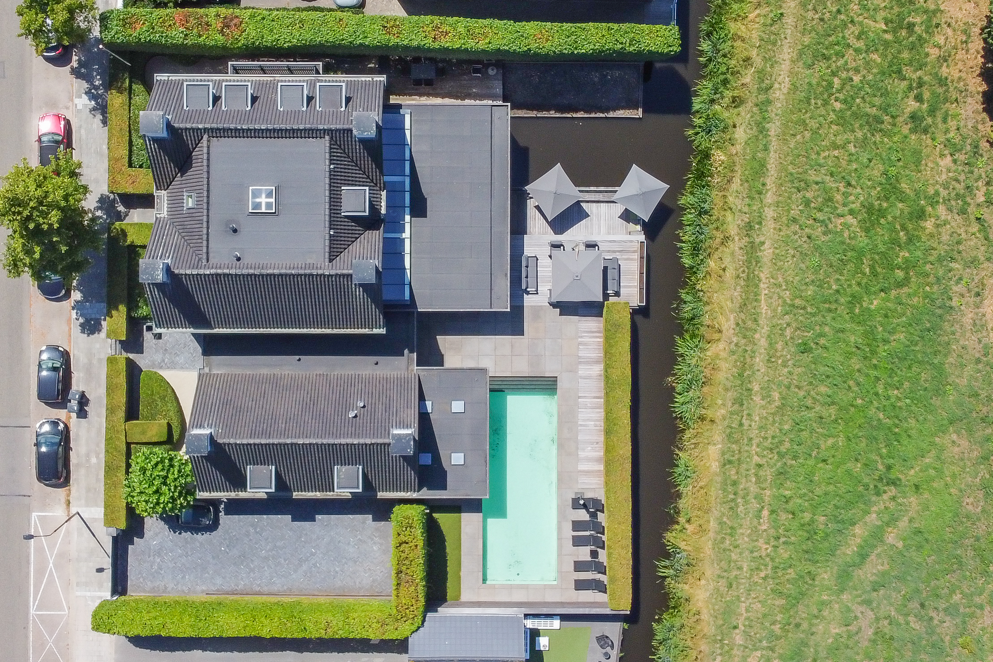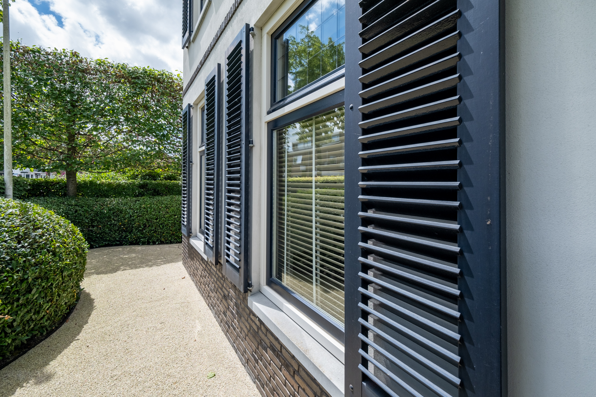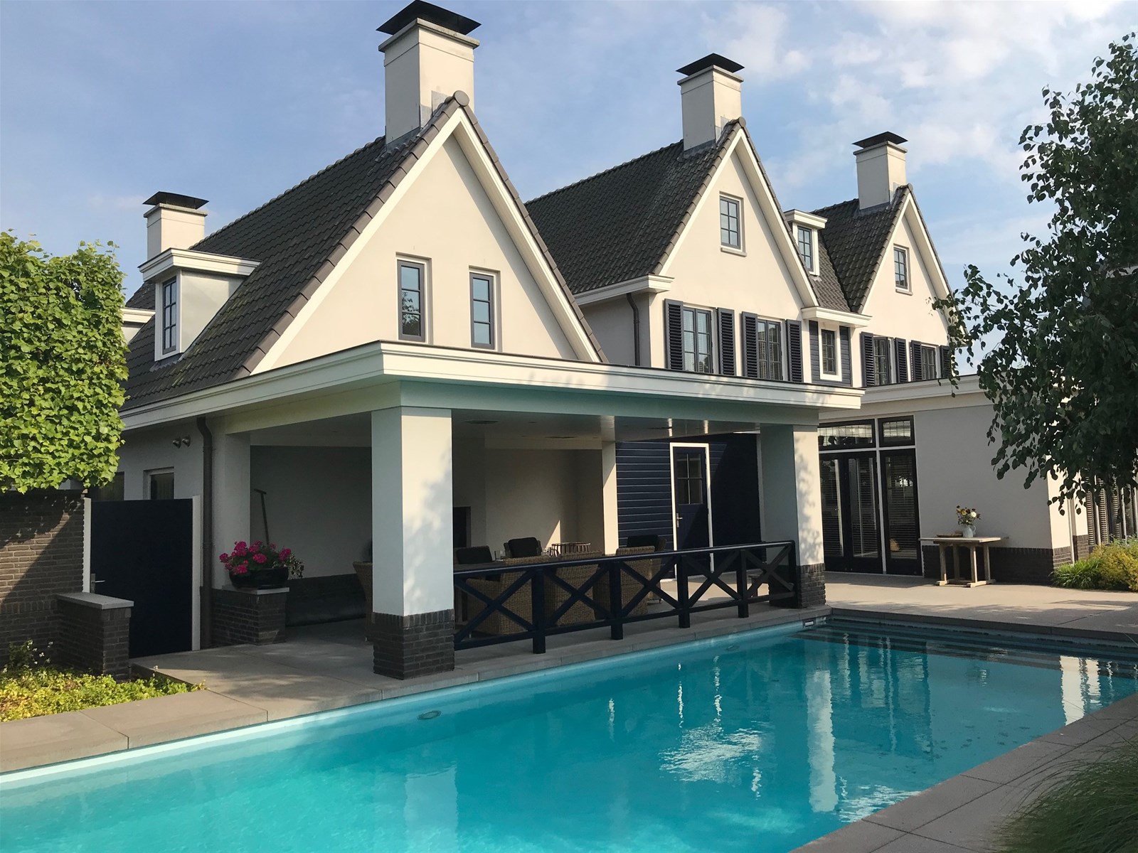De villa is volledig omgeven door een groene, omheinde tuin wat maximale privacy waarborgt. Je beschikt over een royale veranda, parkeerruimte voor meerdere auto’s, een dubbele inpandige garage én een verwarmd buitenzwembad. De achtertuin grenst aan water en heeft vrij uitzicht over een groene dijk waardoor je hier volop privacy geniet. Hier wordt buitenleven een vanzelfsprekendheid.