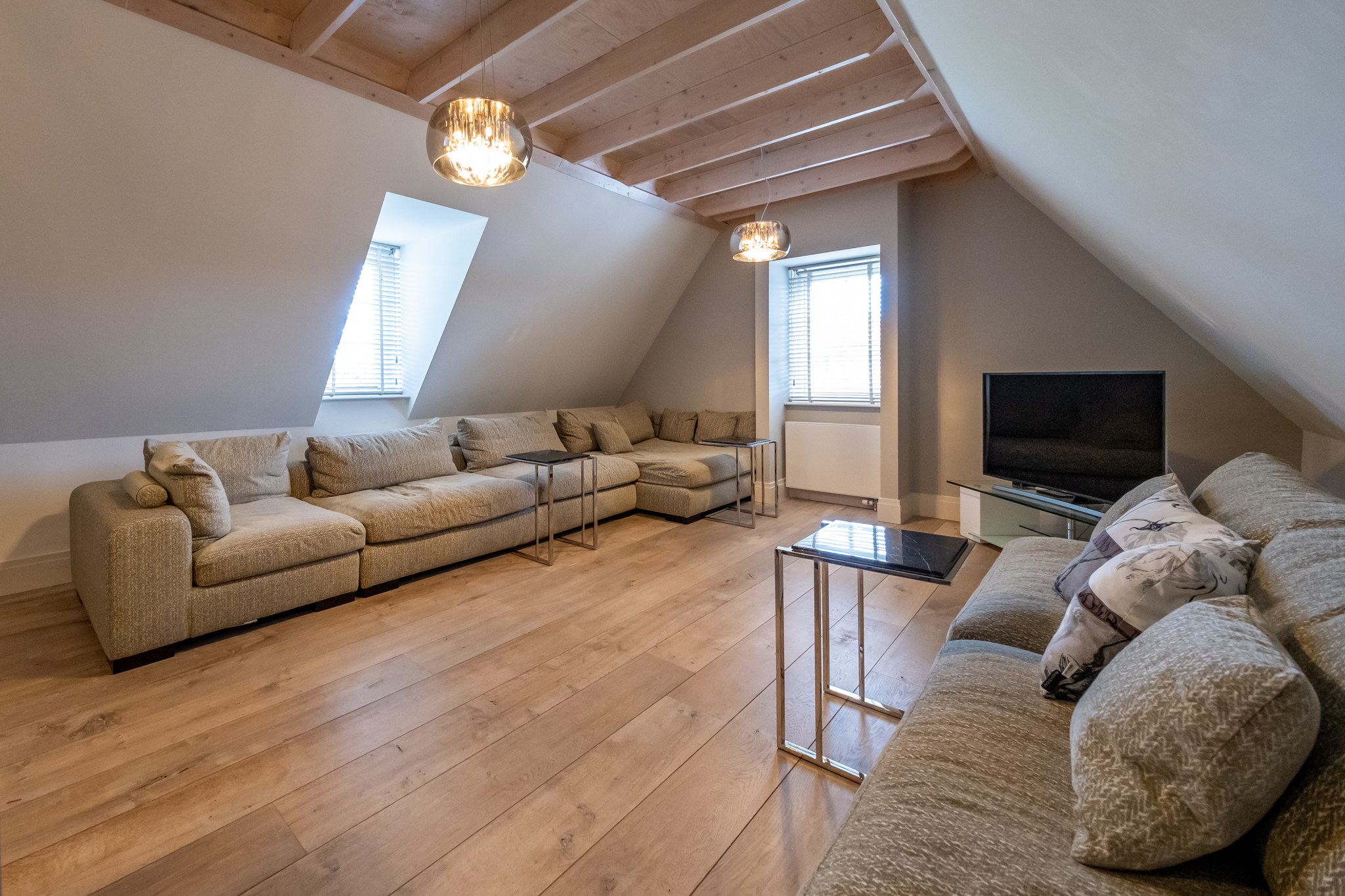 + loft boven de garage met eigen opgang, ideaal als thuisbioscoop, hobbyruimte, speelkamer, werkruimte of voor het verblijf van een au pair of schoonmoeder