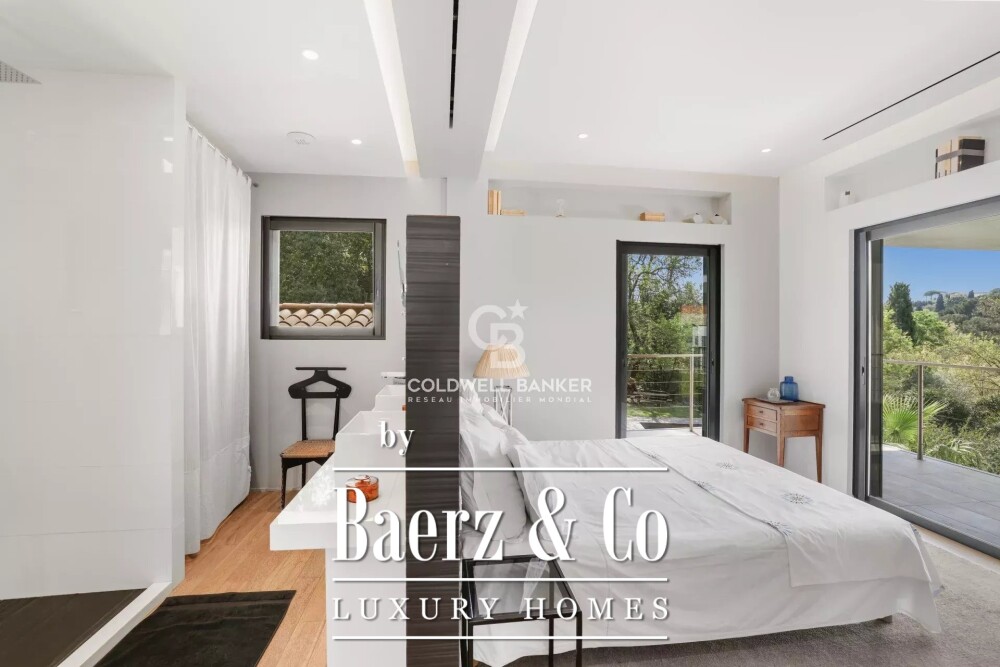 Villa Mougins belichaamt hedendaagse verfijning, genesteld in een gewilde residentiële wijk waar, vanuit de verhoogde ligging, panoramisch zicht op de omliggende heuvels en het historische dorp zich ontvouwt. De villa, met een totale woonoppervlakte van 500 m², wordt gekenmerkt door strakke architectonische lijnen en een overvloed aan daglicht, wat zorgt voor een ingetogen, uitnodigende sfeer.