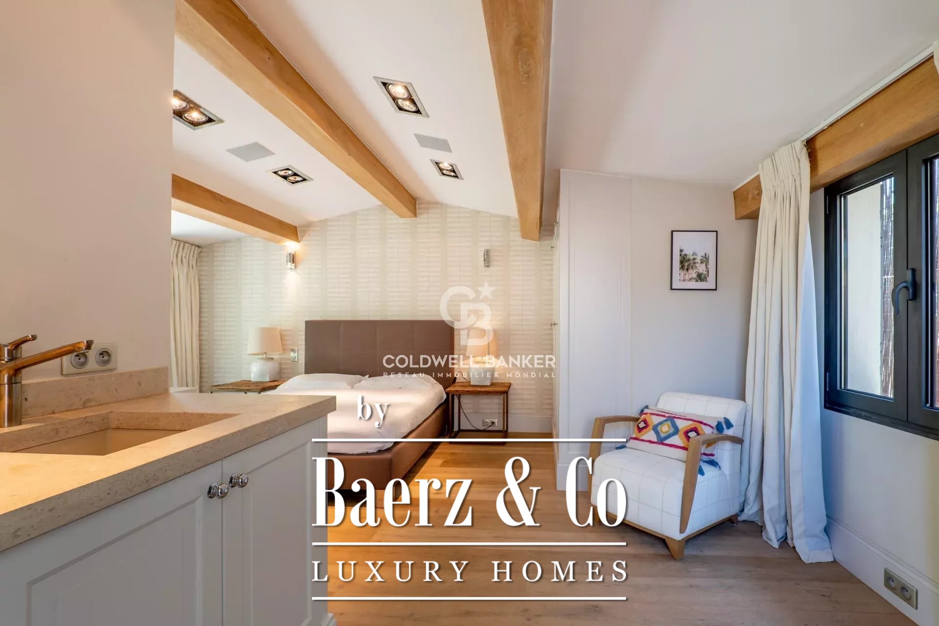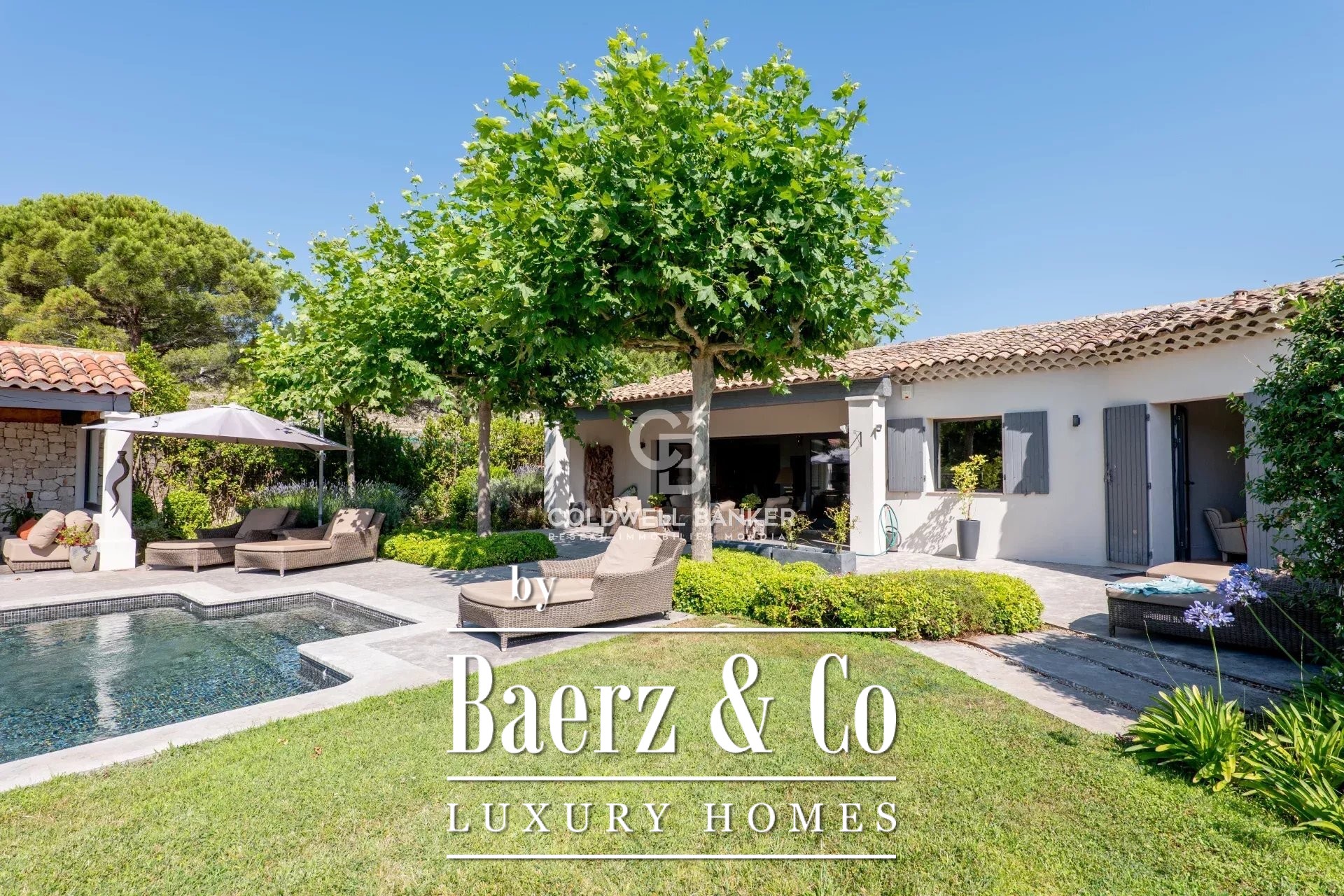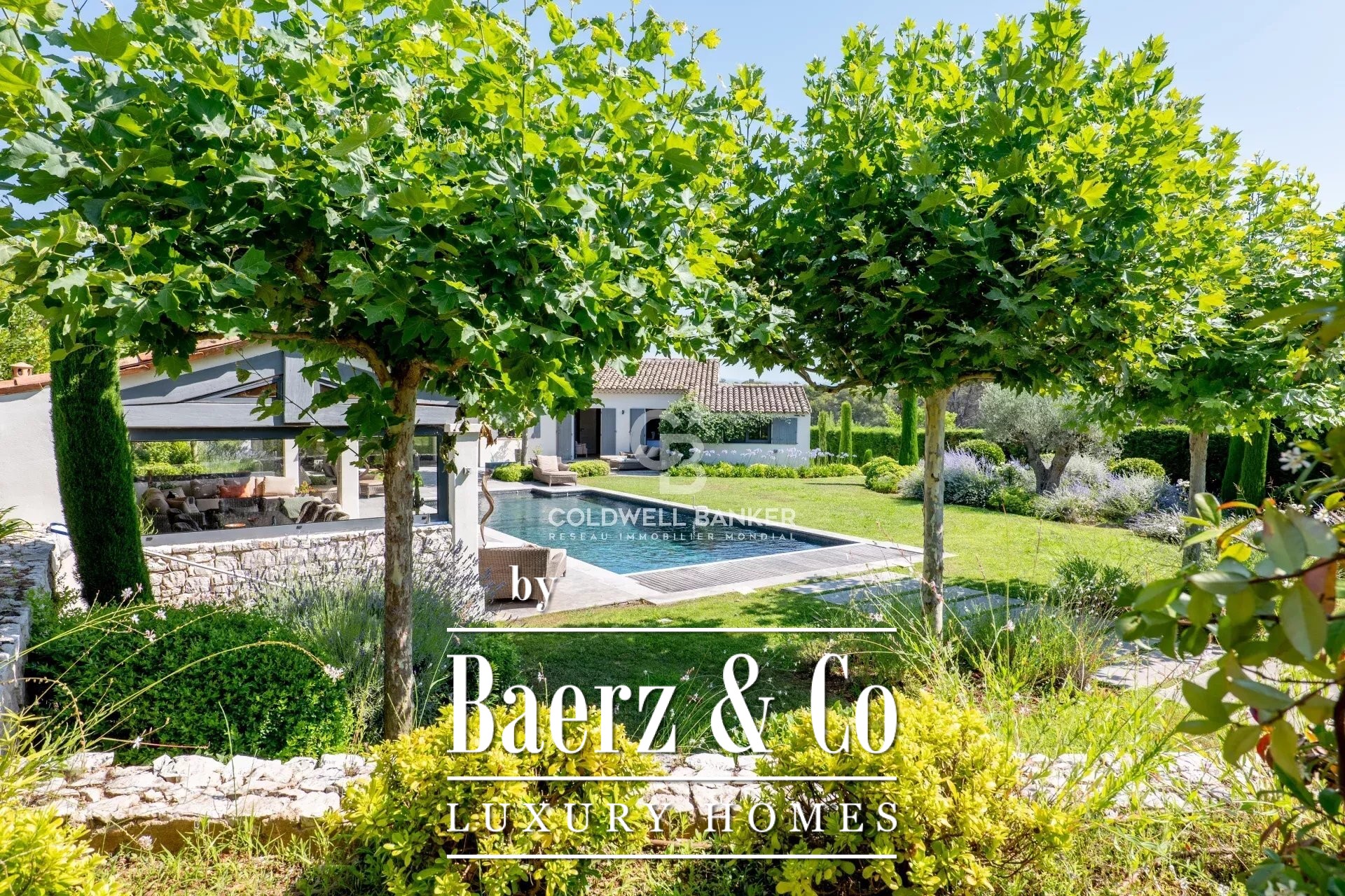 Villa Mougins biedt een stijlvolle uitvalsbasis in een rustige woonwijk, op enkele minuten van het karakteristieke dorpscentrum en vooraanstaande internationale scholen. Deze woning van 340 m² draait om een hoofdverblijf waar ingetogen ontwerp en comfort samenkomen in een royale entree, woonkamer met open haard, eetkamer en volledig uitgeruste keuken. De mastersuite beschikt over een slaapkamer, badkamer en kleedruimte; twee extra suites vervolledigen de privévleugel op de begane grond.