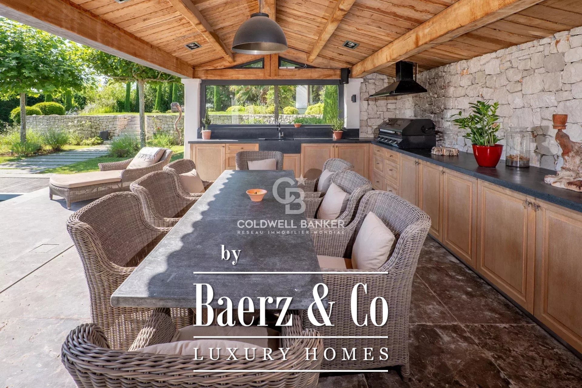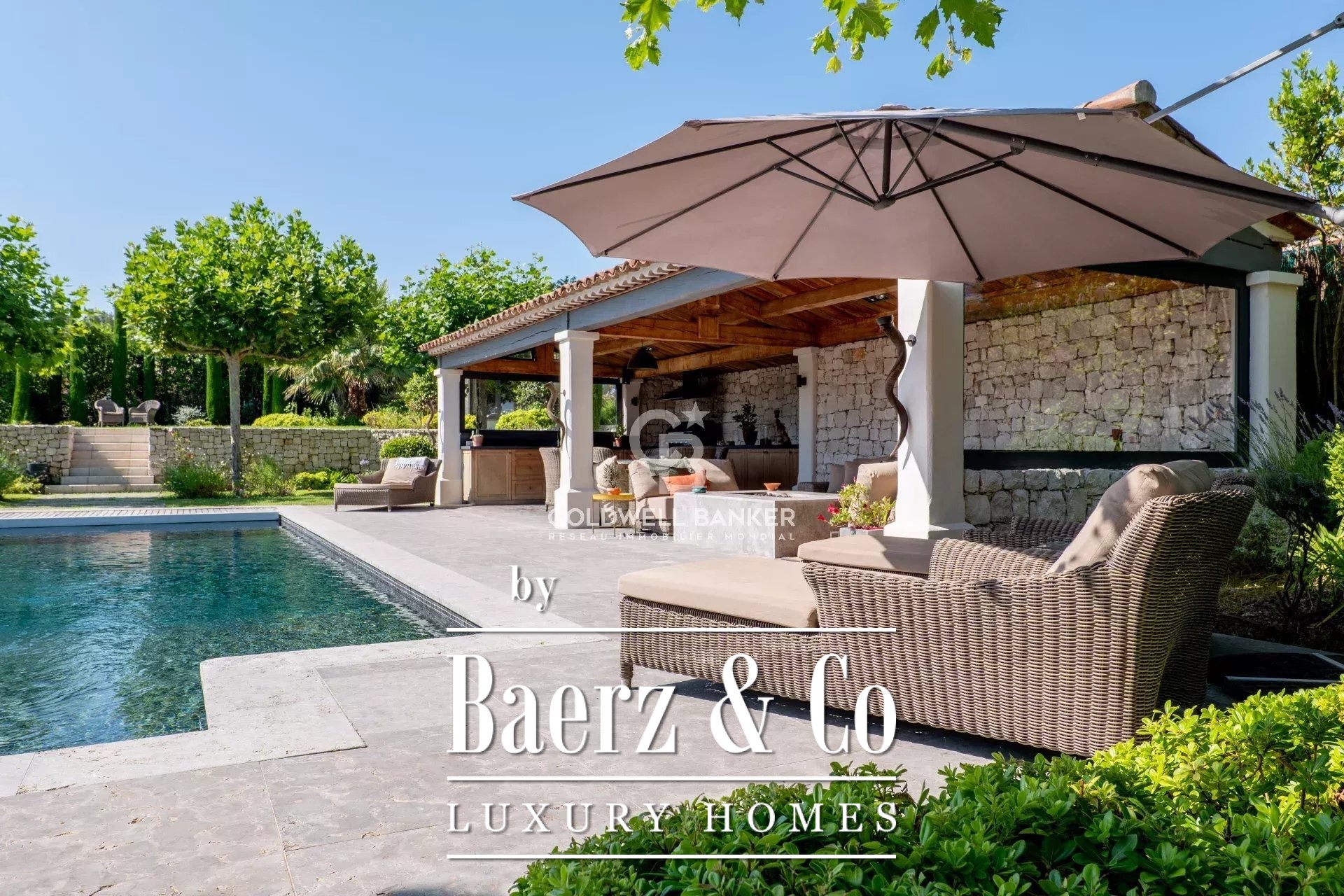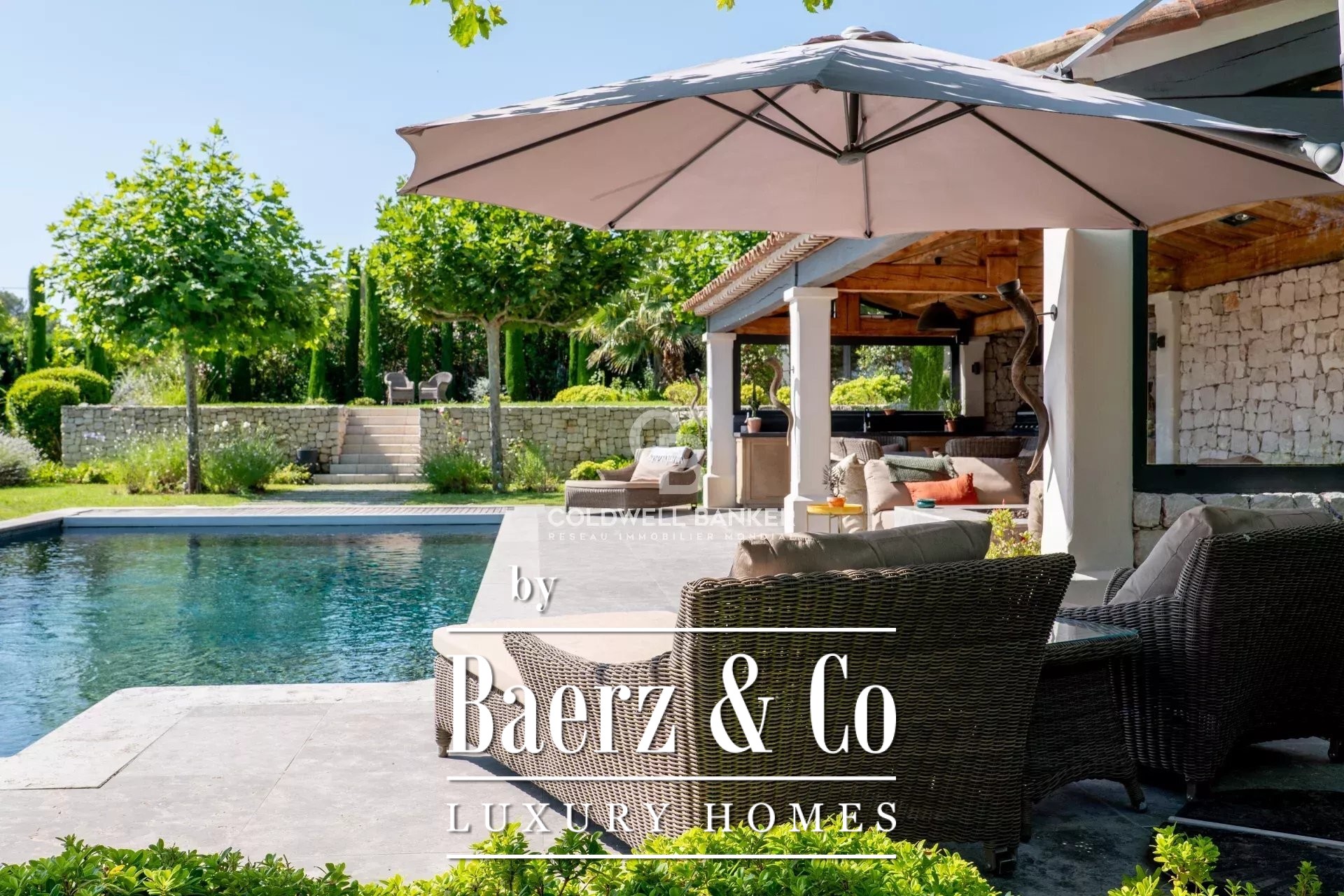 Buiten ademt de sfeer rust en uitnodigende bijeenkomsten: een opvallend zwembad, poolhouse van 130 m² met vuurplaats en buitenkeuken, omgeven door volgroeide tuinen. Voorzieningen zoals airconditioning, open haard, carport voor twee auto’s en verhoogde veiligheid garanderen een onbezorgd verblijf. Deze villa te koop in Mougins nodigt uit tot ontspannen wonen, discreet nabij lokale cultuur en internationale verbindingen.