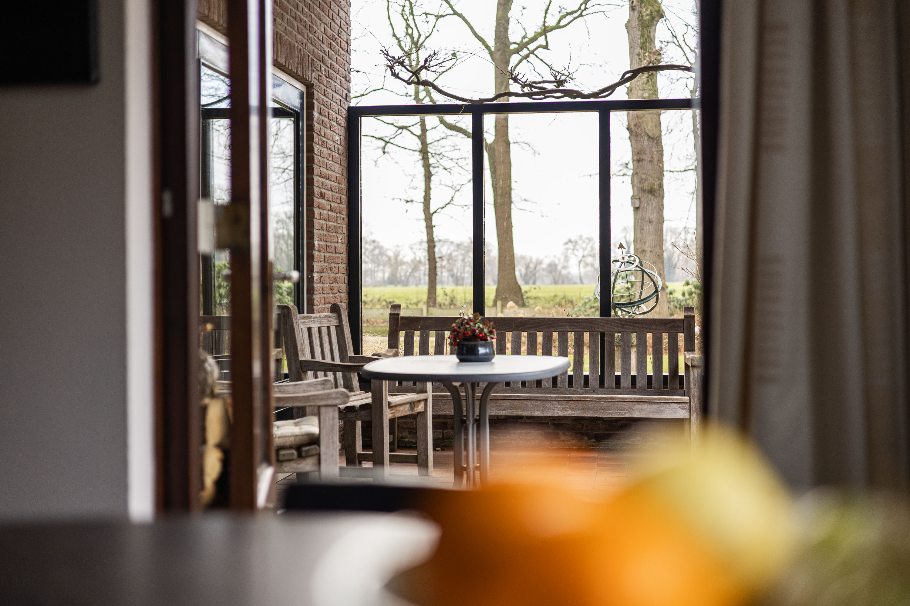 Aan de achterzijde van het landhuis staat een vrijstaand bijgebouw, waarin een knusse vakantiewoning met een gebruiksoppervlakte van 50 m2 is gerealiseerd, met op de begane grond de hal met trapopgang, woon/eetkamer incl. open keuken en een badkamer voorzien van douche, toilet en wastafel. Op de verdieping zijn twee slaapkamers. Via een in 2018 verleende omgevingsvergunning is het gebruik als recreatiewoning toegestaan. Een fijne mogelijkheid om uw gasten stijlvol en in volledige privacy te laten logeren. En uiteraard met mogelijkheid voor recreatieve verhuur.