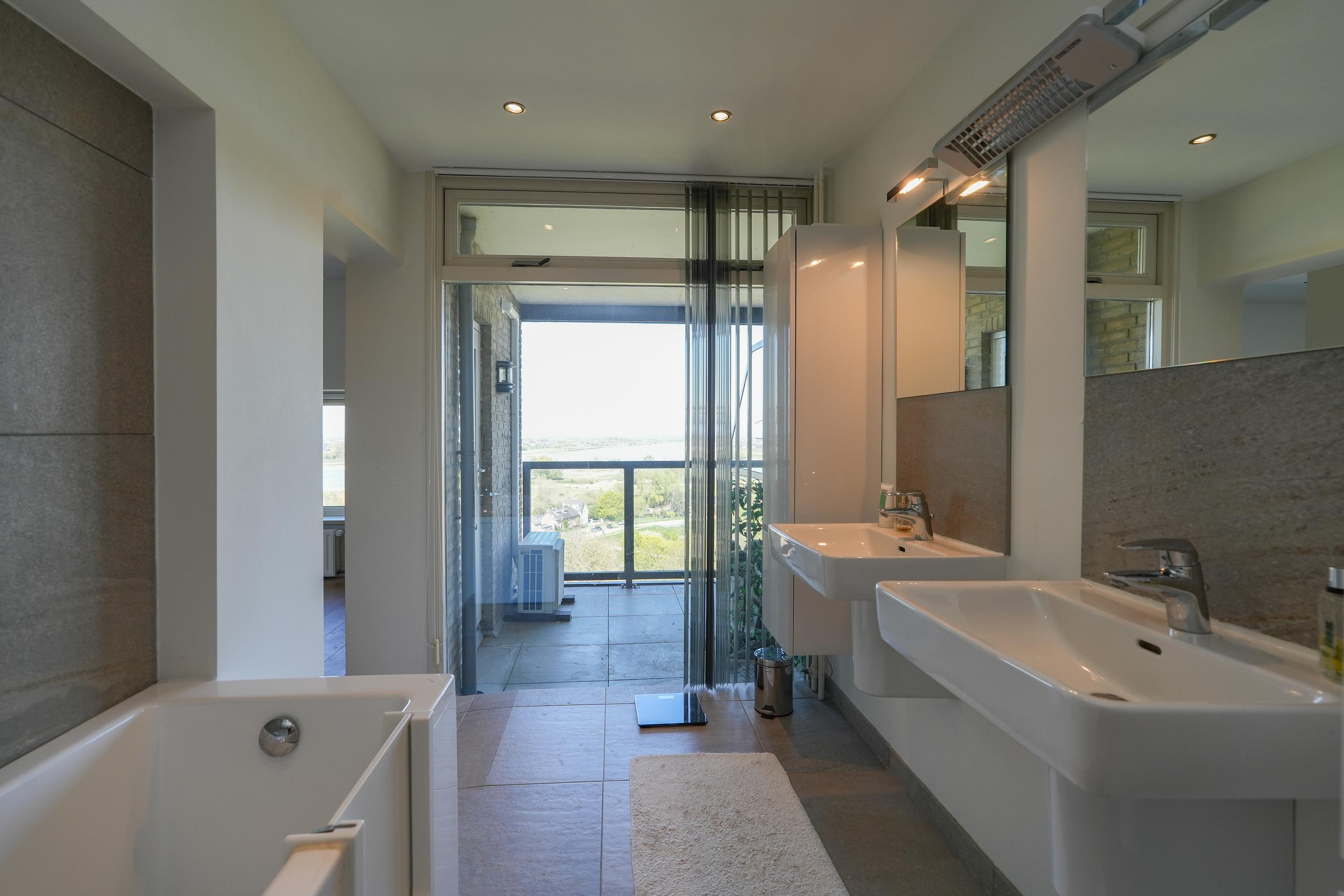De overige twee slaapkamers zijn eveneens ruim en genieten, net als de rest van de woning, van veel daglicht en een vrij uitzicht. Één van deze kamers beschikt bovendien over een eigen balkon op het westen, perfect om te genieten van de middag- en avondzon. De tweede badkamer is voorzien van een douche en wastafel.