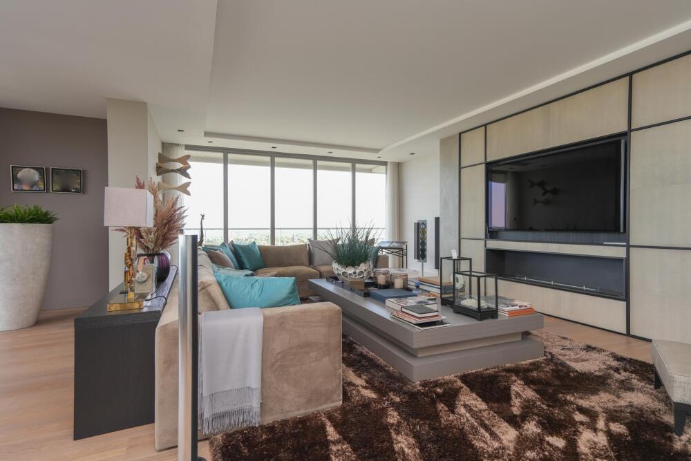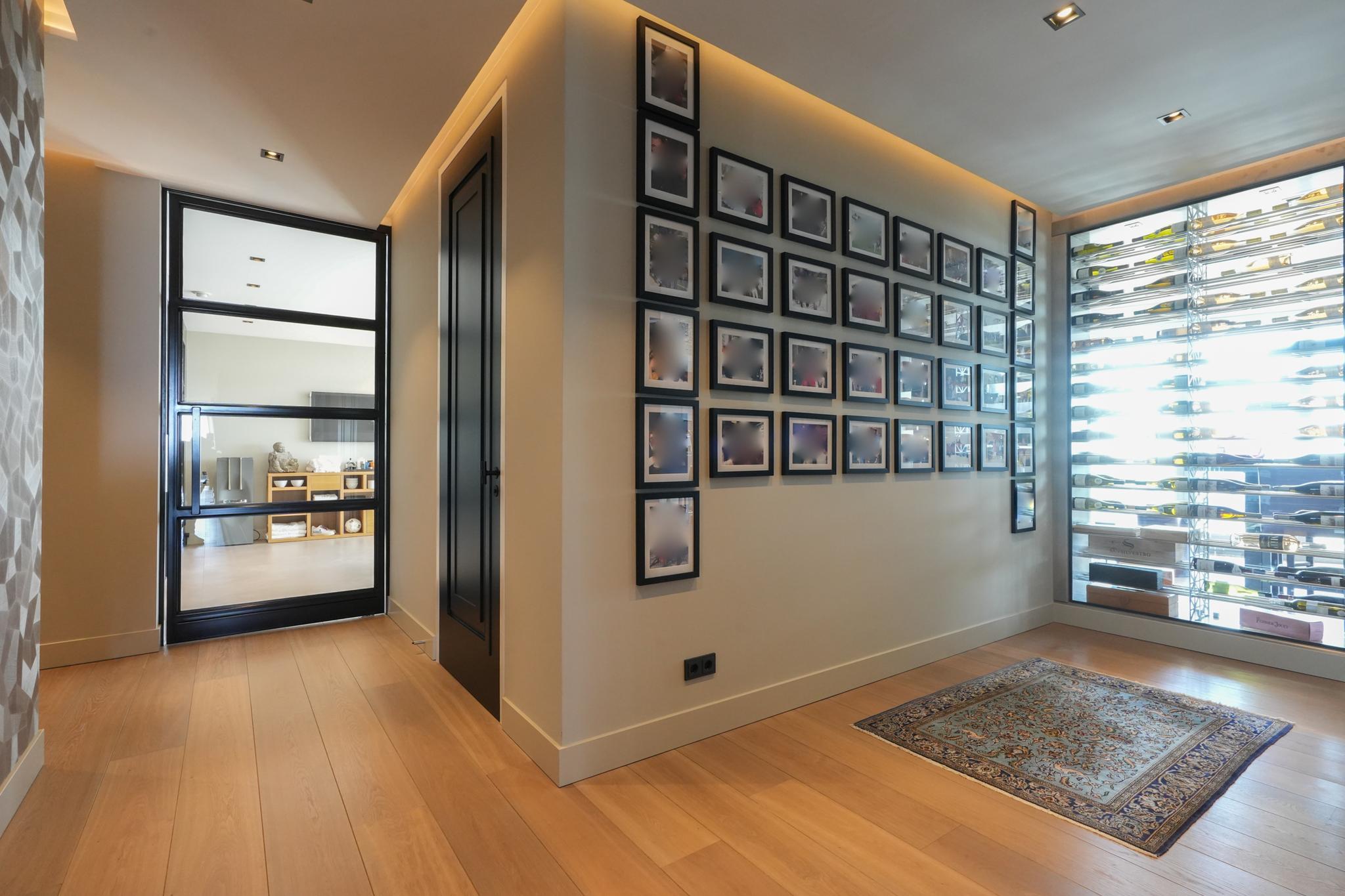 De hoge glazen tussendeuren, de rijke stofferingen, de exclusieve wandbekledingen, het prachtige marmer in de badkamers en toiletten en de zeer smaak- en sfeervolle meubilering zijn volledig in harmonie met het uitgesproken en luxueuze karakter van dit penthouse.