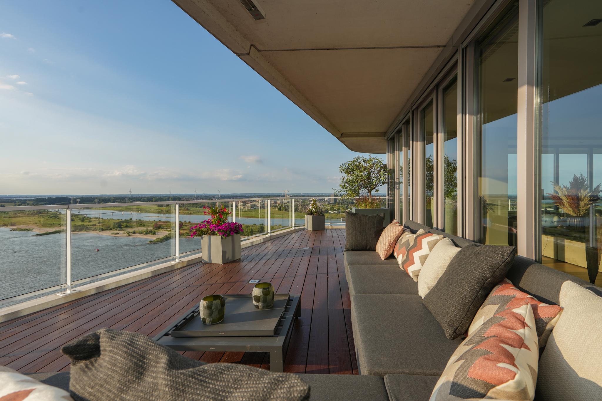 Zeer ruim en uiterst exclusief penthouse met een onovertroffen en adembenemend uitzicht. Gelegen op de 16e verdieping van De Lunet, direct aan de oever van De Waal.