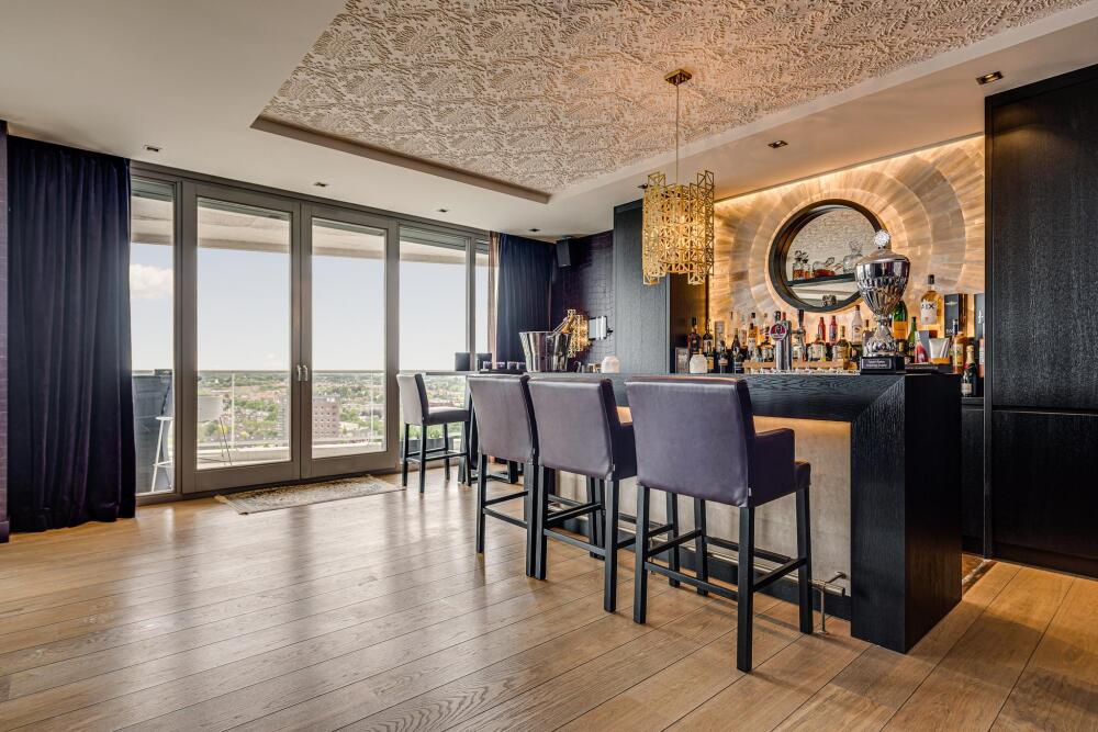 • Uiteraard is het gehele penthouse voorzien van klimaatbeheersing en koelblok. Tevens zijn er vier separate ingebouwde airco’s voor de bar, kantoor, slaapkamer en fitnessruimte. Deze zijn individueel aan te sturen. Zo kunnen deze ruimtes onafhankelijk gekoeld worden.